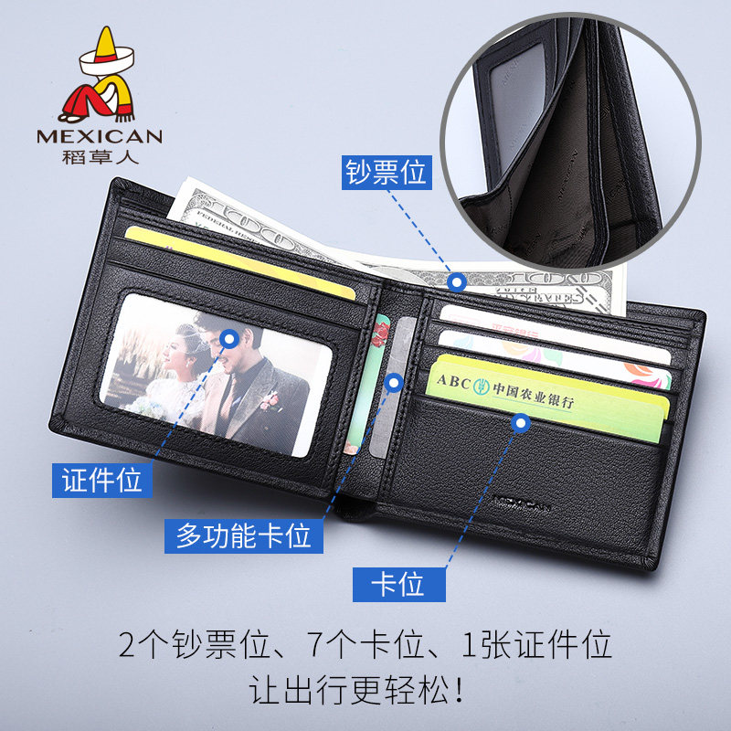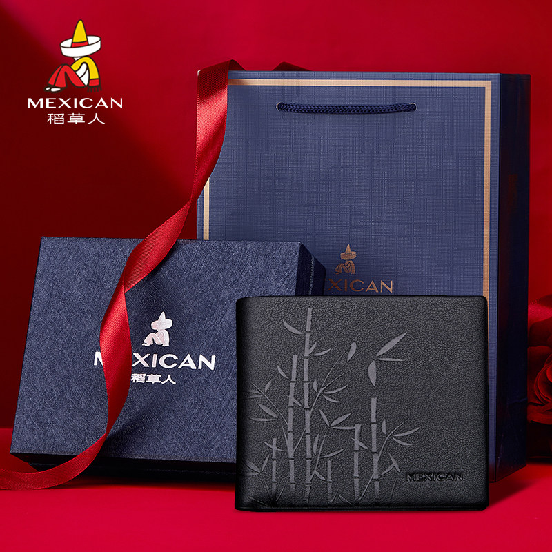稻草人2025新款钱包男士真皮短款潮牌超薄礼盒送男友爸爸生日礼物