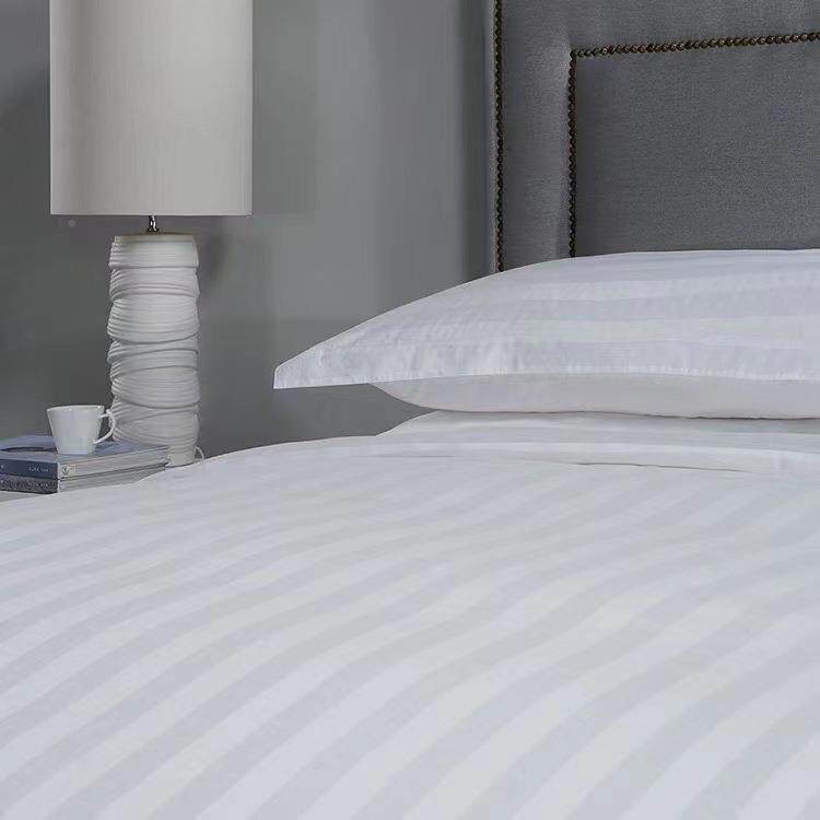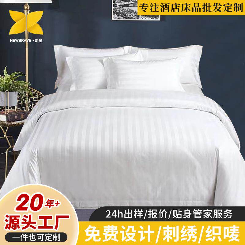 全棉酒店布草3民0912宿公分缎条床馆白色床单被宾套酒店四件品套