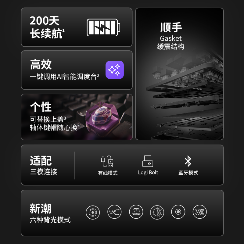 罗技 灵砚 K868 无线客制化机械键盘游戏电竞游戏打字办公通用