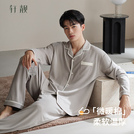 轩靓纯棉睡衣男士春秋款长袖2026新款秋冬针织四季大码家居服套装