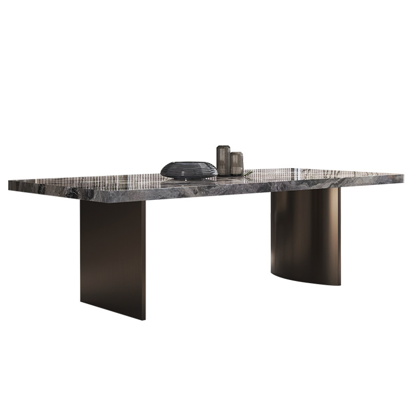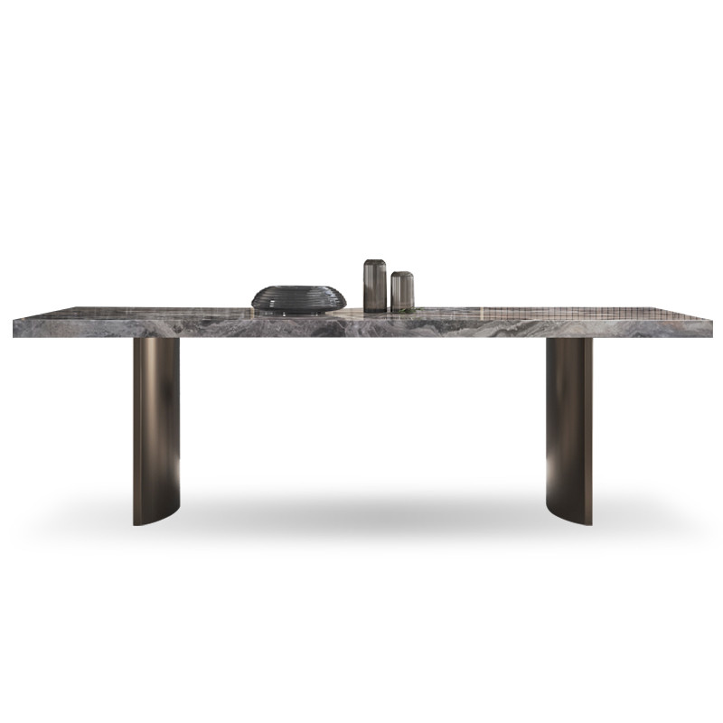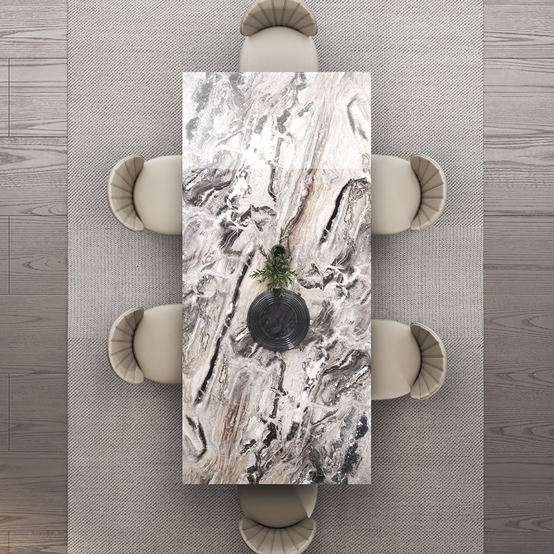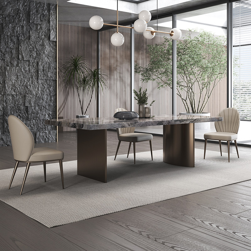 斯帝罗兰威尼斯棕大理石餐桌椅组合现代简约长方形家用亮光意式奢