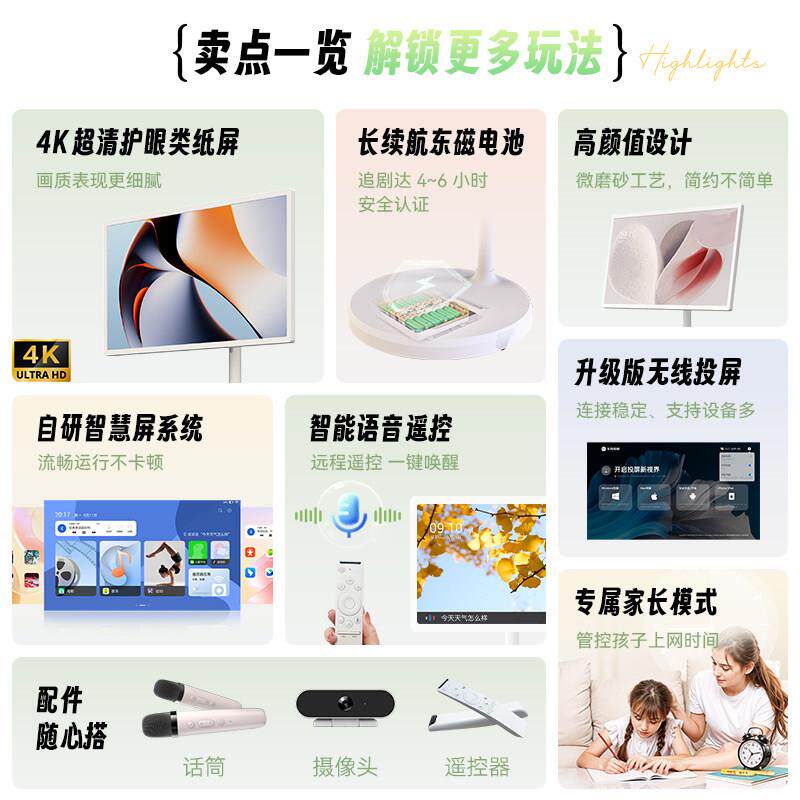 易乐看闺蜜机Pro 32英寸4K超高清八核随心屏移动智慧屏无线投屏网