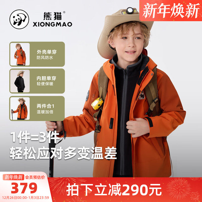 小骆驼熊猫儿童冲锋衣三合一2025新款防风防水户外登山服男童外套