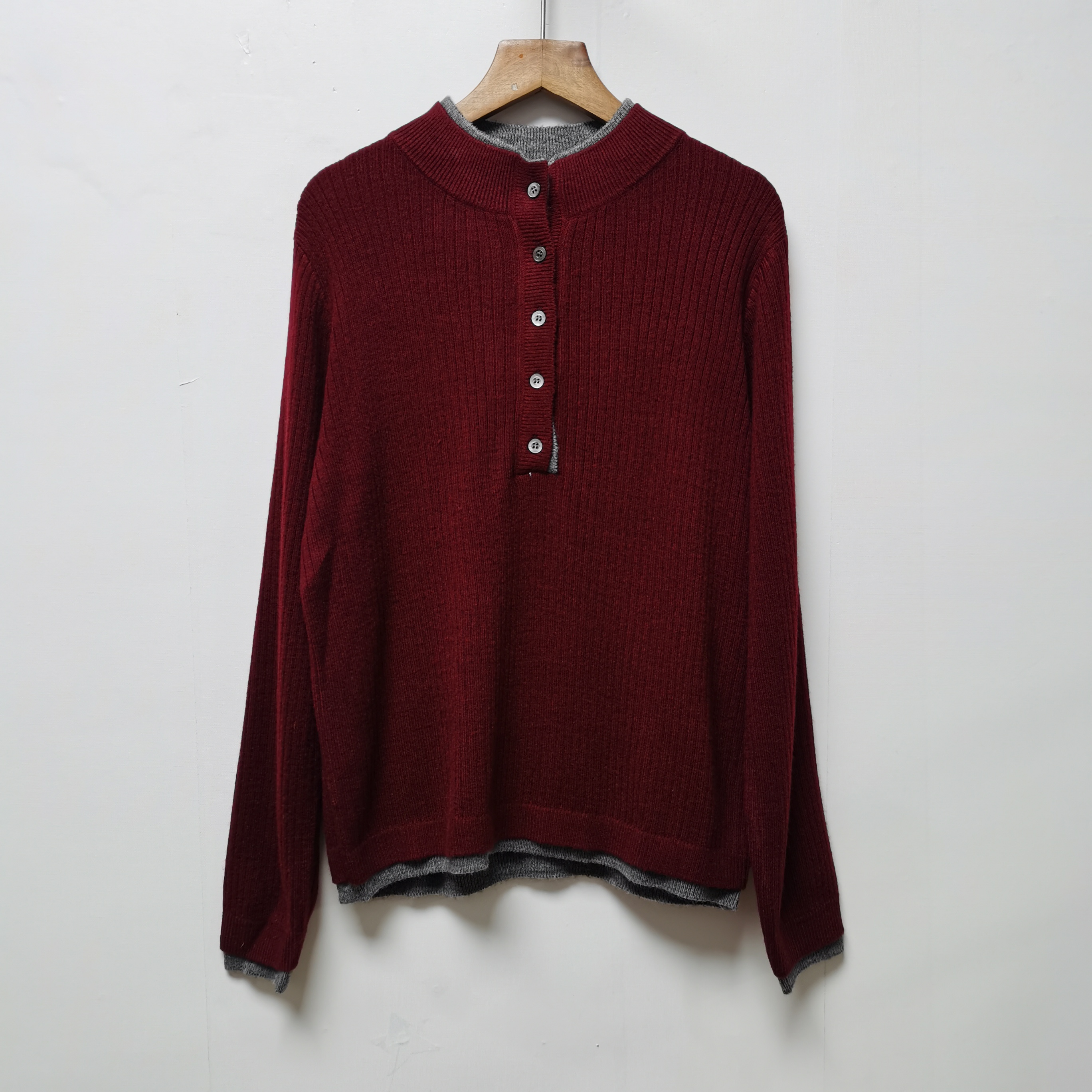 假两件撞色坑条修身羊毛混纺针织衫女冬厚实套头内搭长袖灰色毛衣