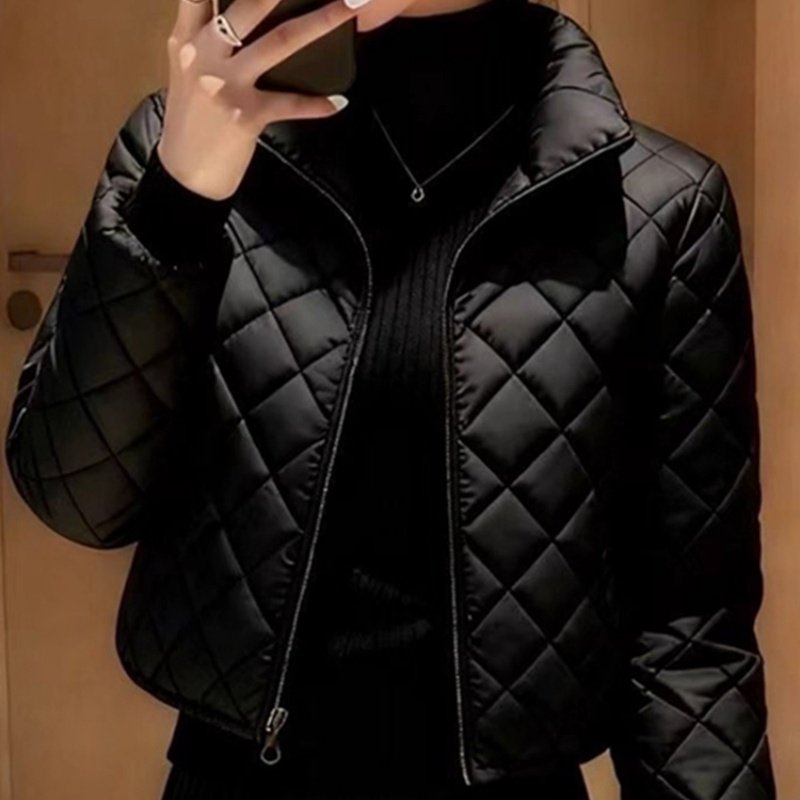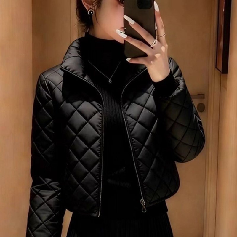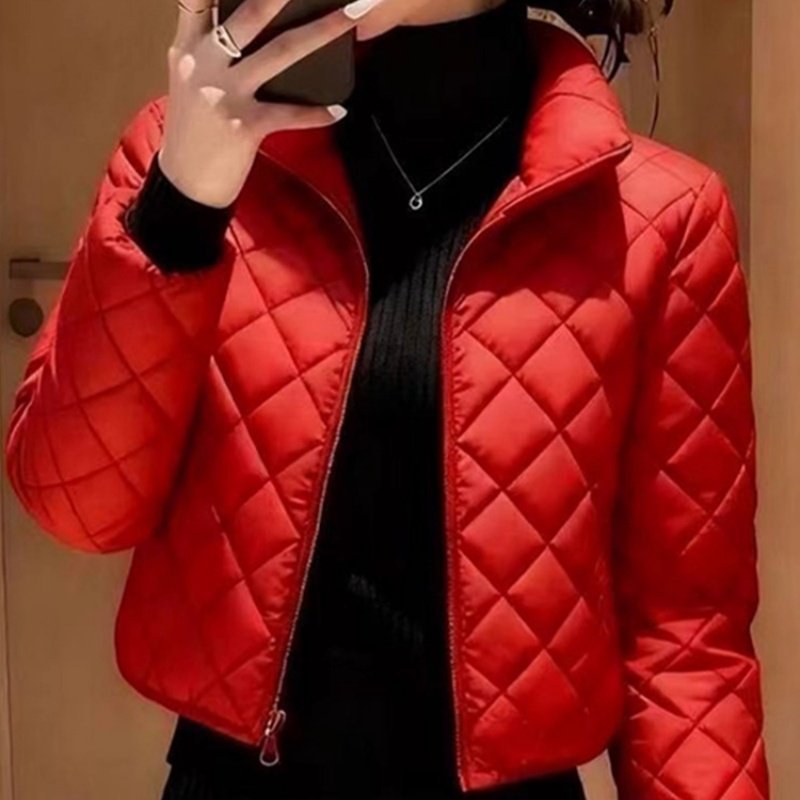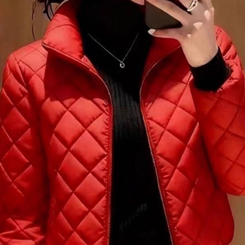 红色短款菱格棉服女2025秋冬新款时尚百搭立领修身显瘦保暖外套潮