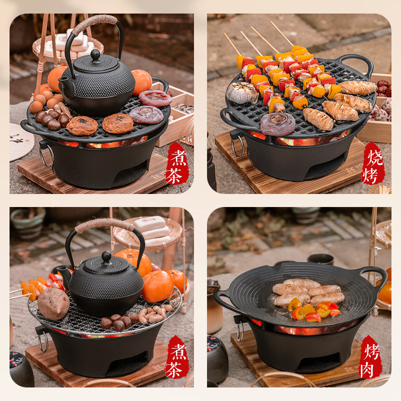 围炉煮茶烤火炉套装户外炭炉庭院室内烧烤炉家用煮茶器具全套