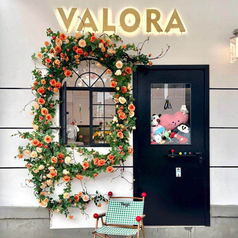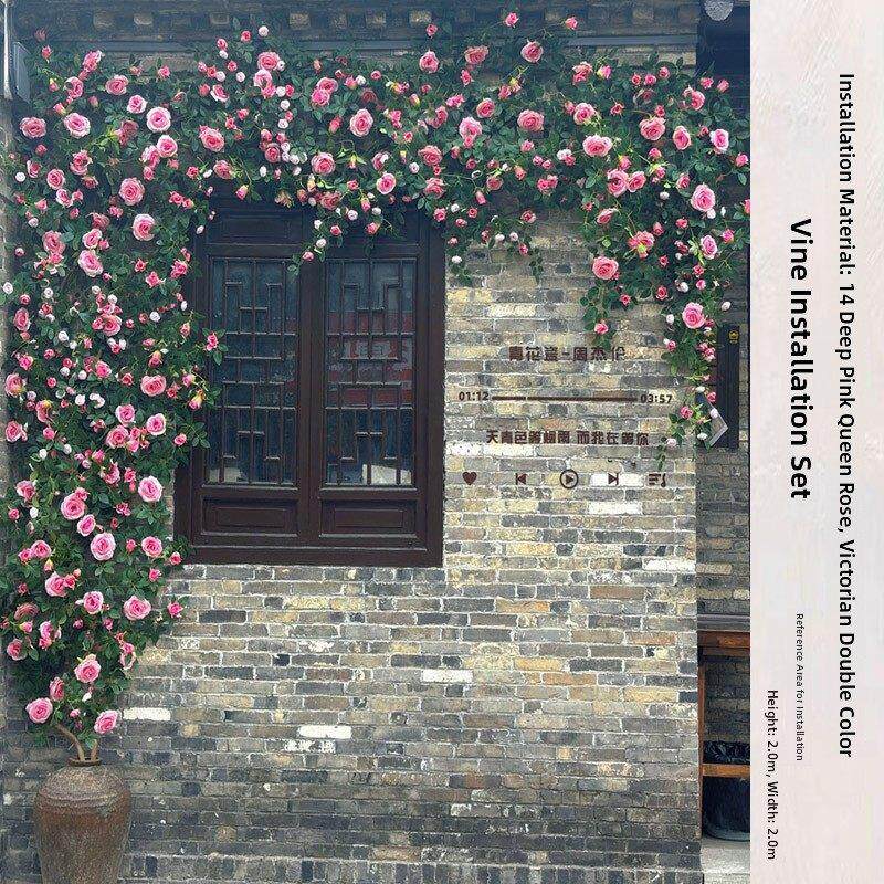 模拟玫瑰藤网红景点照片签到花墙背景户外景观瀑布景观花卉艺术
