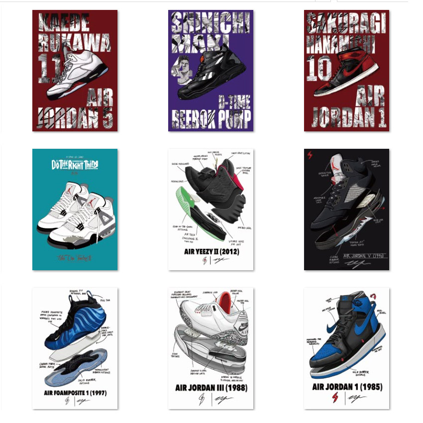 AJ海报墙贴篮球球鞋鞋店潮牌乔丹装饰墙纸复古怀旧nba篮球照片图