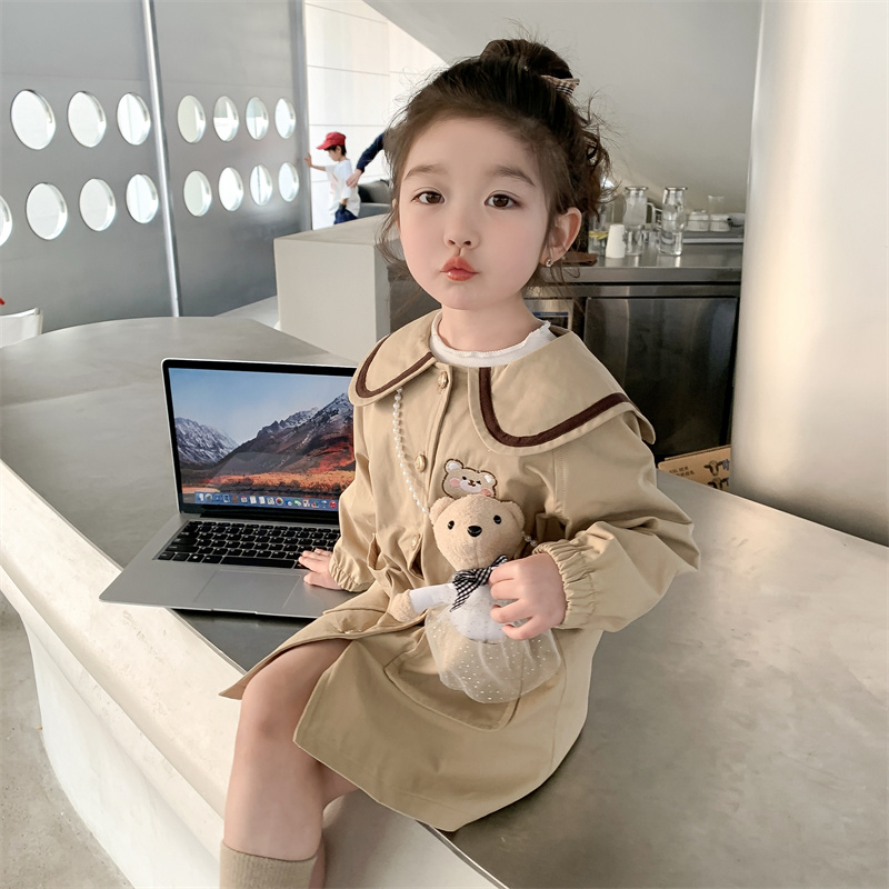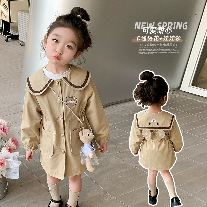 女童风衣春秋款英伦风儿童海军领时尚女宝宝收腰洋气秋装网红外套
