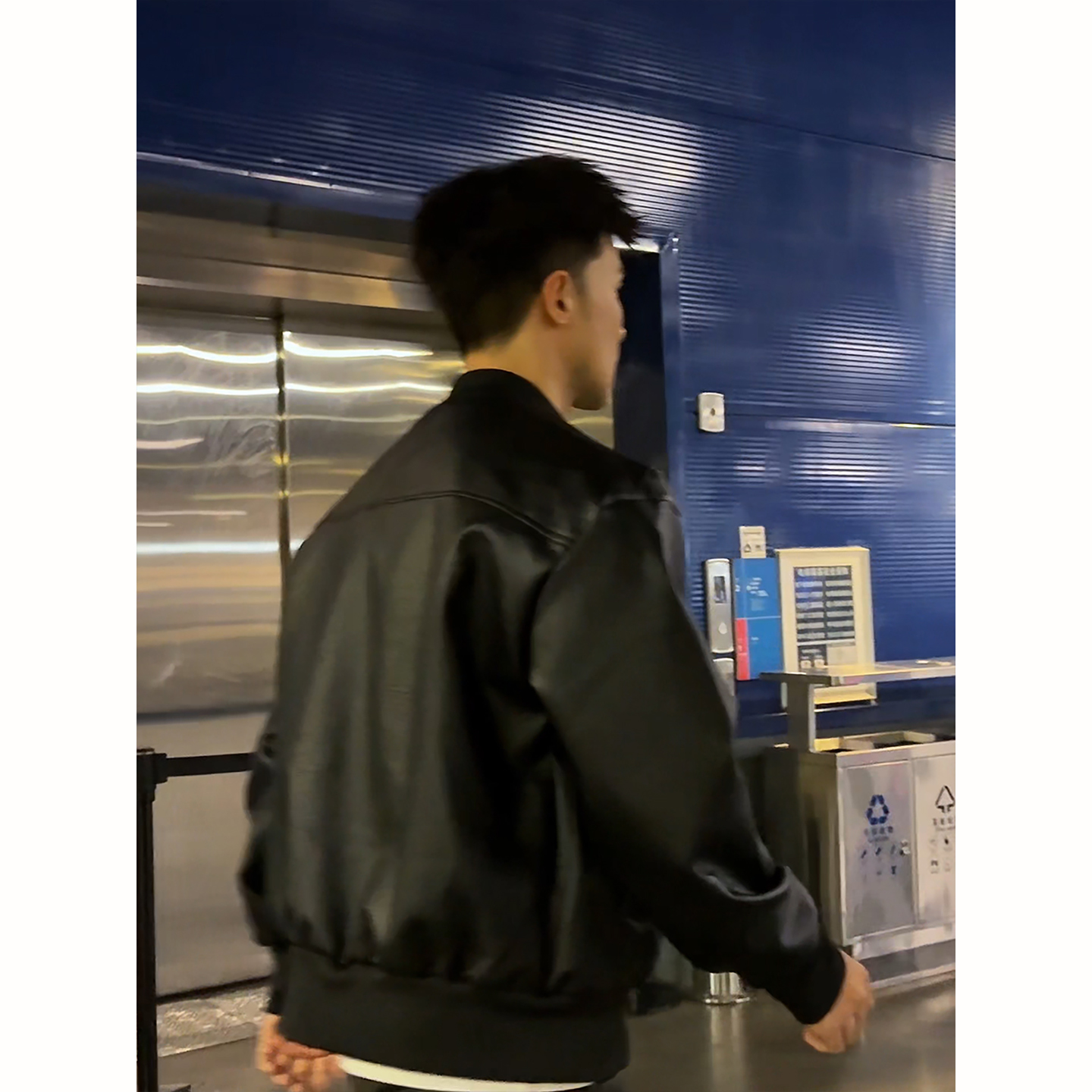 黑武士防泼水皮衣外套男秋季美式痞帅红色内衬夹克短款廓形机车服