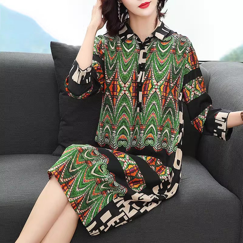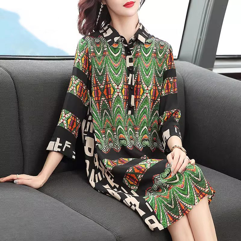 专柜正品上流社会印花真丝连衣裙2025春夏新款气质休闲桑蚕丝裙子