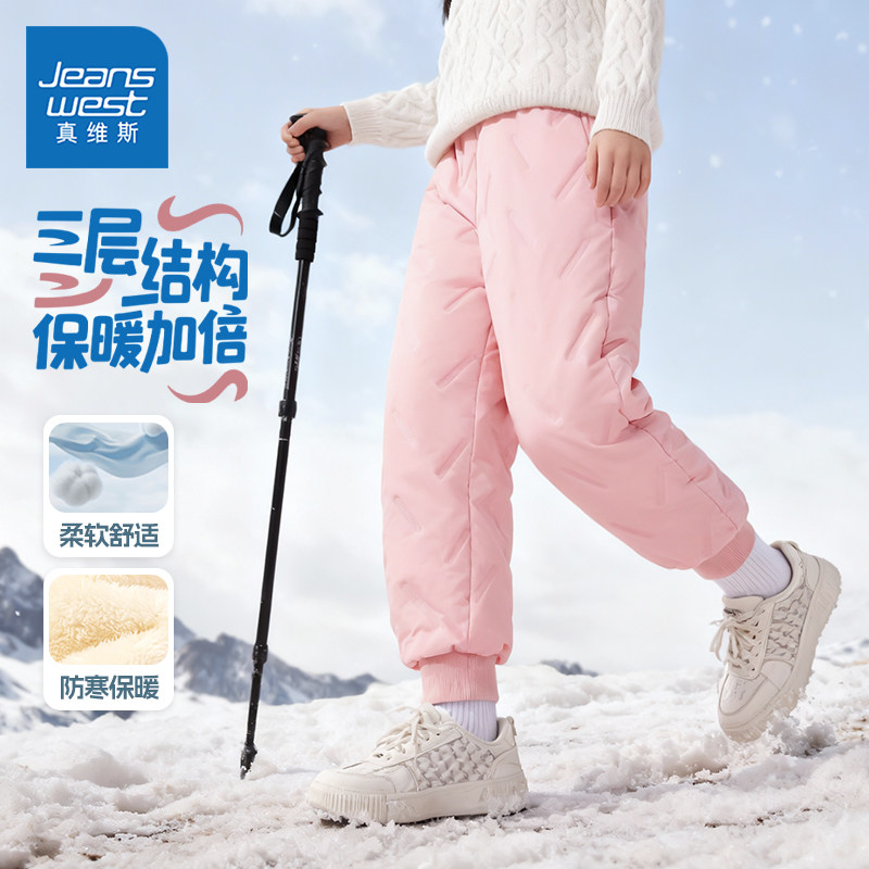 真维斯童装儿童冬季保暖裤子女孩加绒加厚运动裤男童冬款黑色长裤