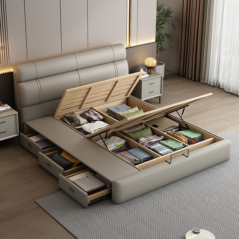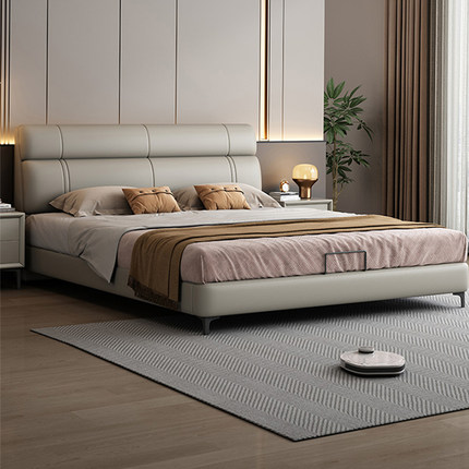 尚品宅配真皮床现代简约主卧大床轻奢高端大气1米8双人床卧室软包