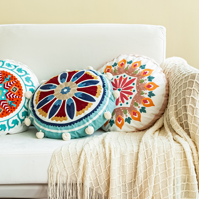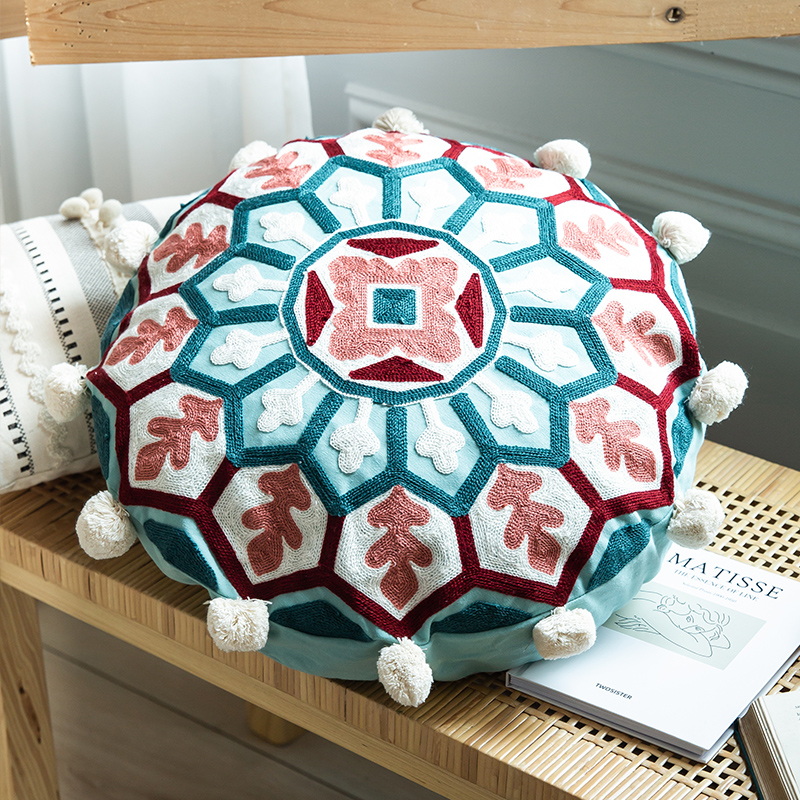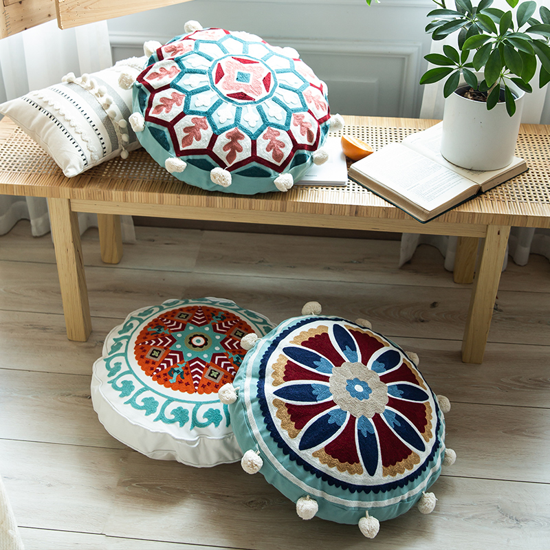 ins摩洛哥民族风民宿装饰圆形靠垫客厅沙发抱枕靠背垫床头圆靠枕