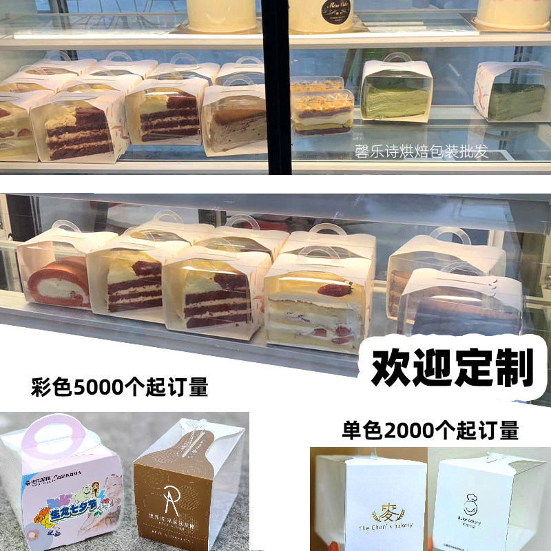 切块蛋糕盒慕斯三角形千层切件打包蛋糕卷西点甜品手提透明包装盒
