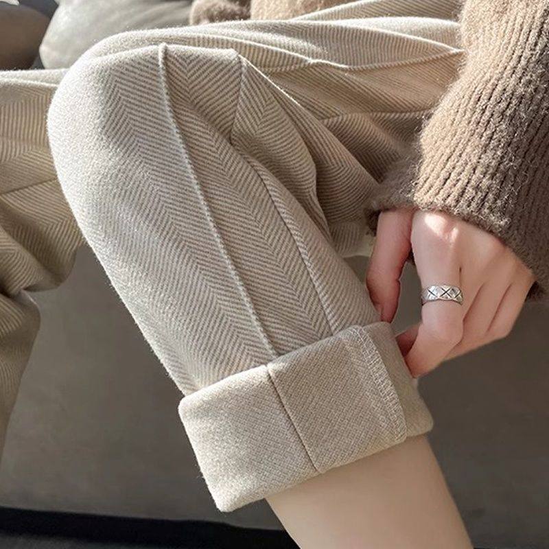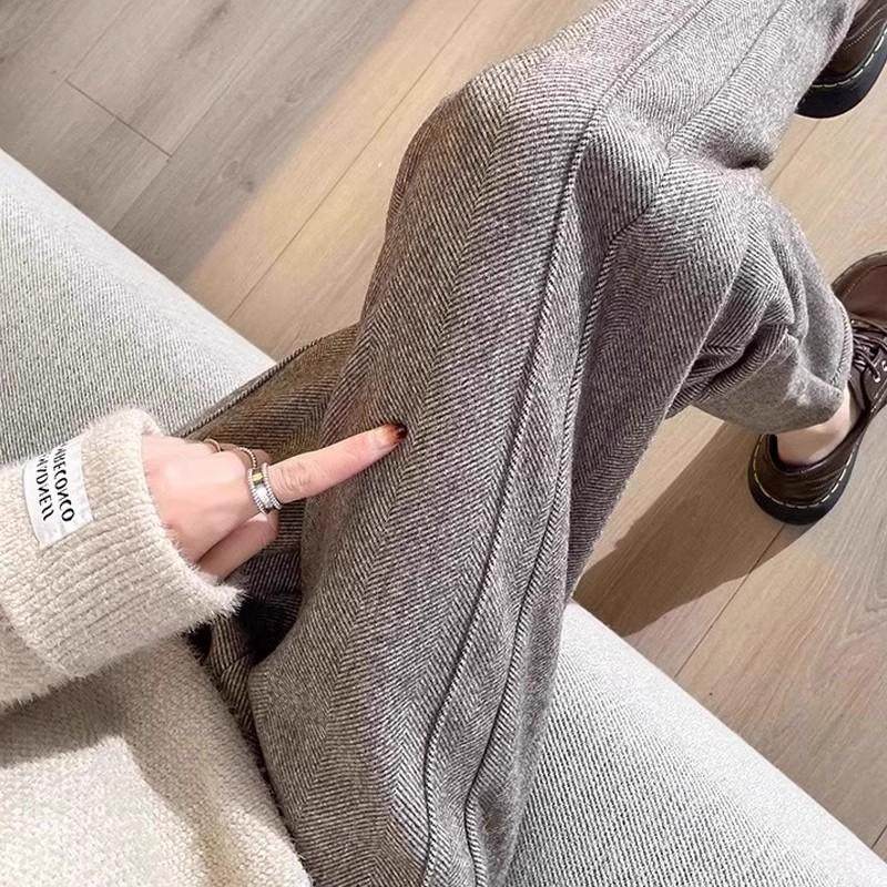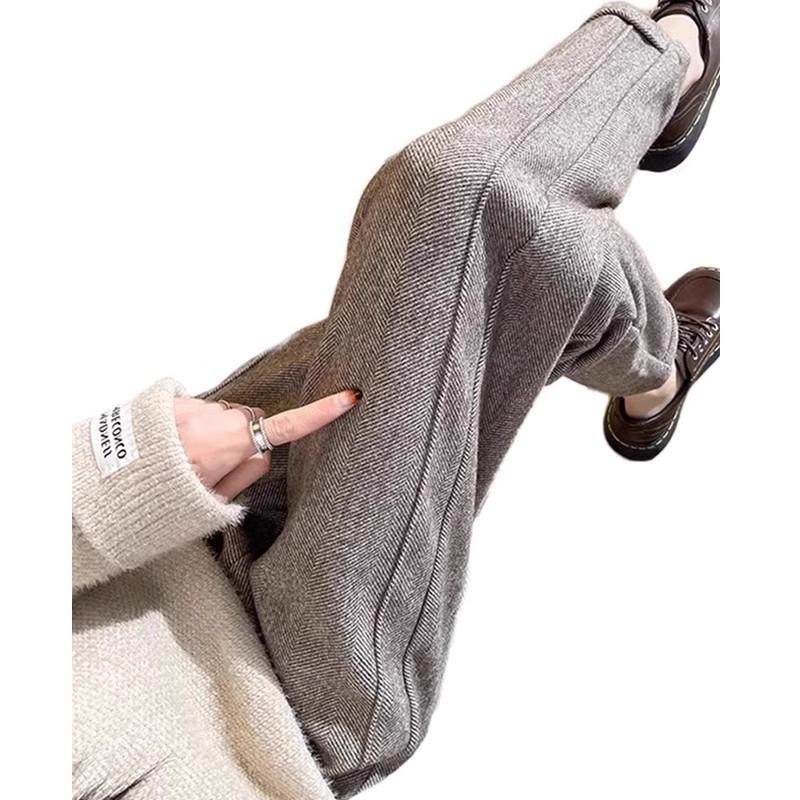 奥特莱斯撤柜清仓捡漏咖色毛呢直筒裤女休闲西裤九分加厚烟管裤秋