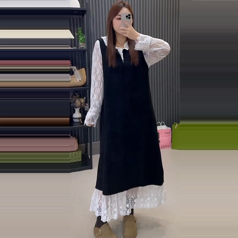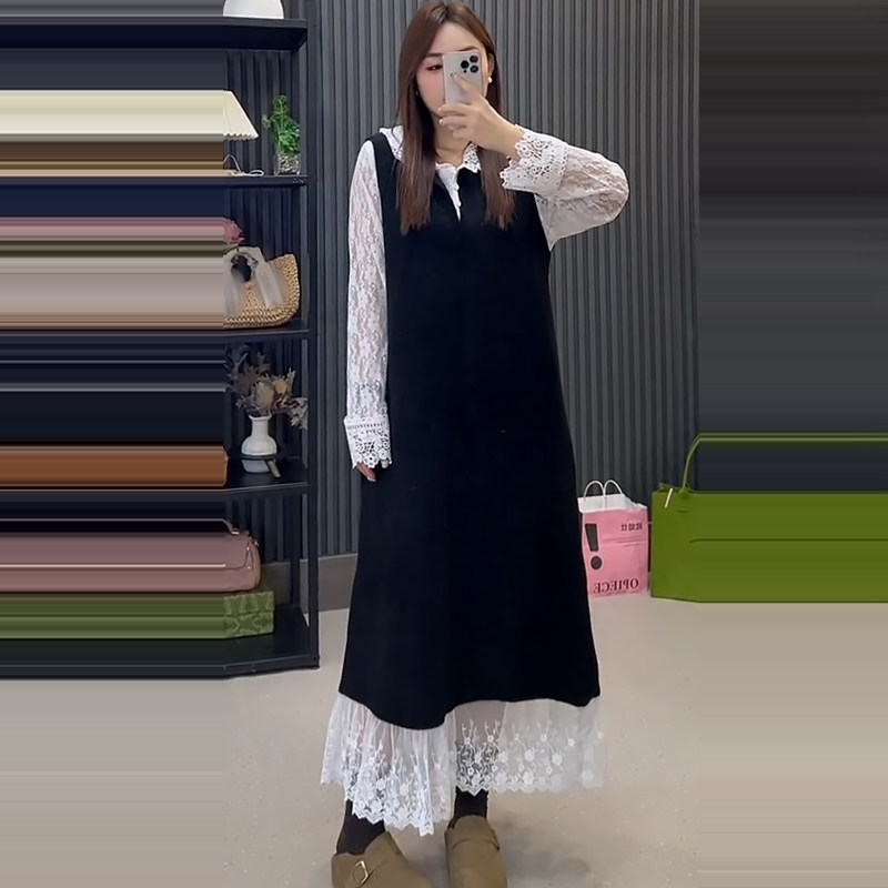 针织毛衣背心裙蕾丝连帽打底衫潮