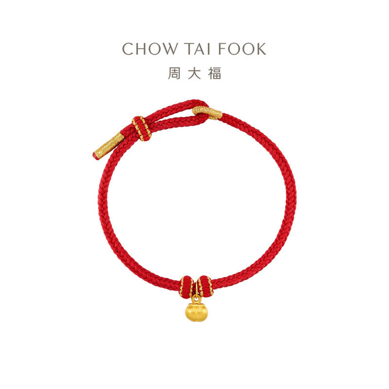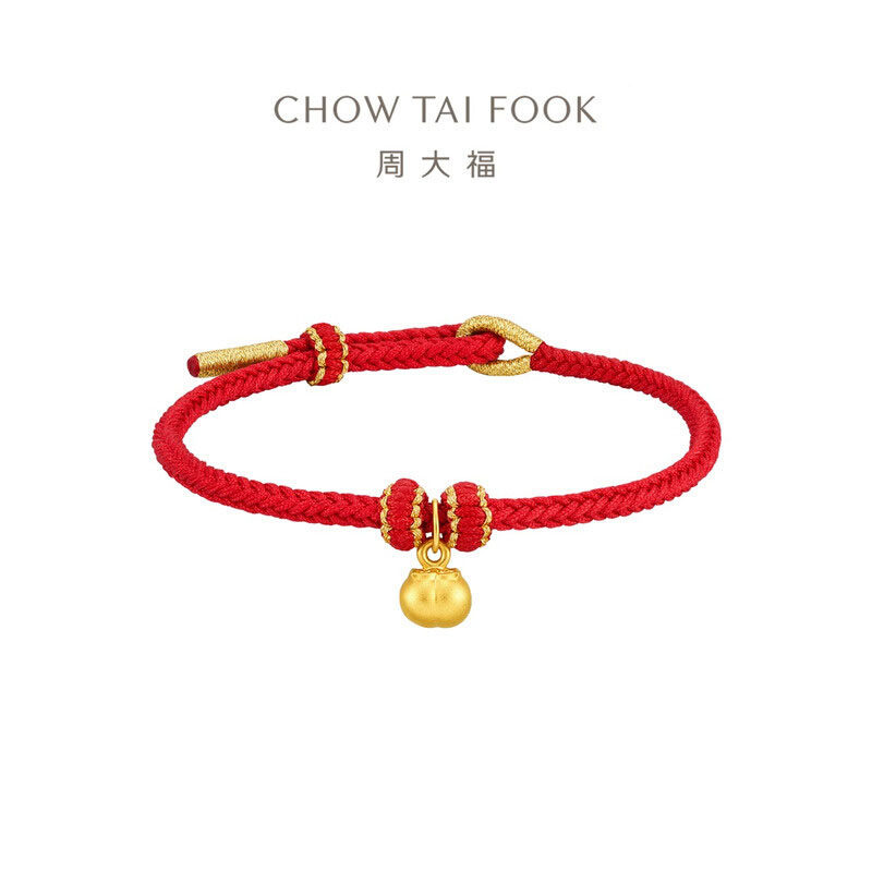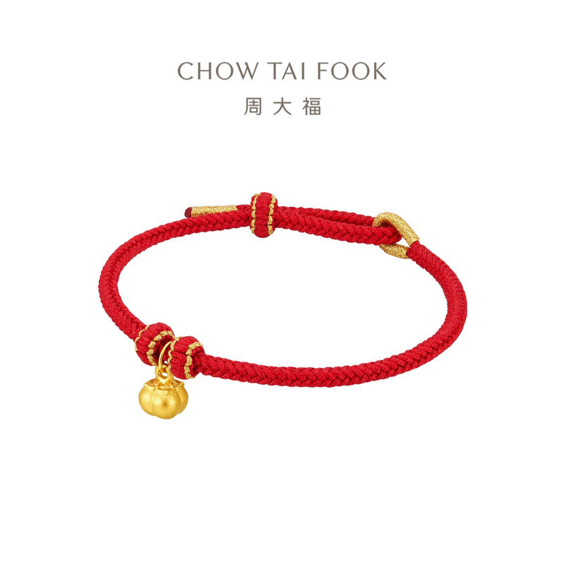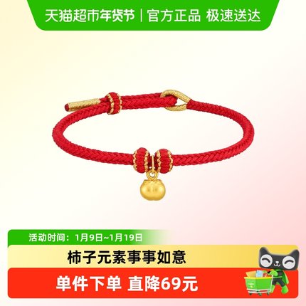 周大福寓意事事如意柿子手工编绳足金黄金手链女EOR1374礼物