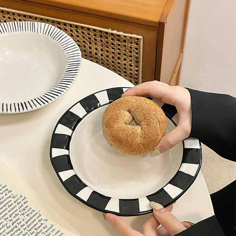 手绘甜品盘子陶瓷餐盘高颜值网红餐具家用可爱水果盘沙拉盘早餐盘