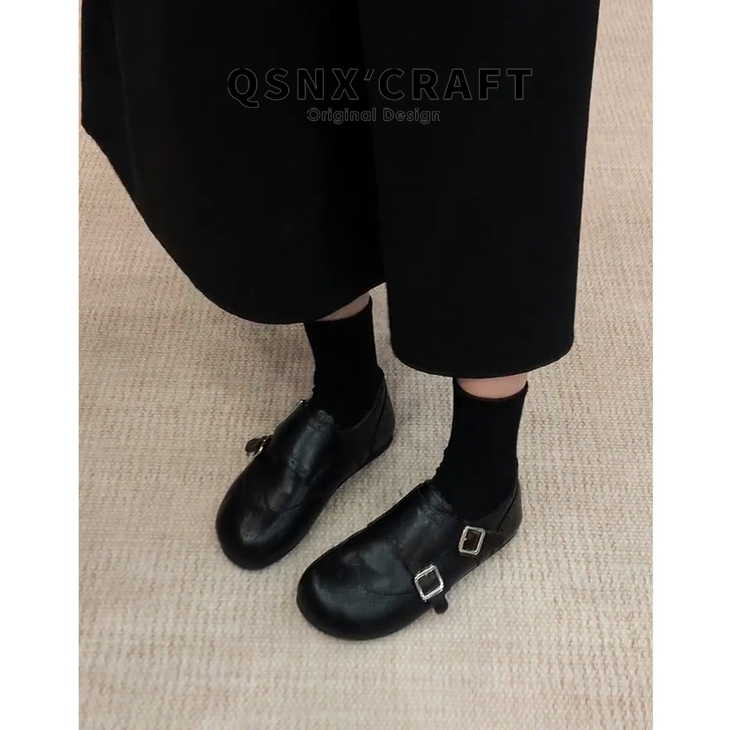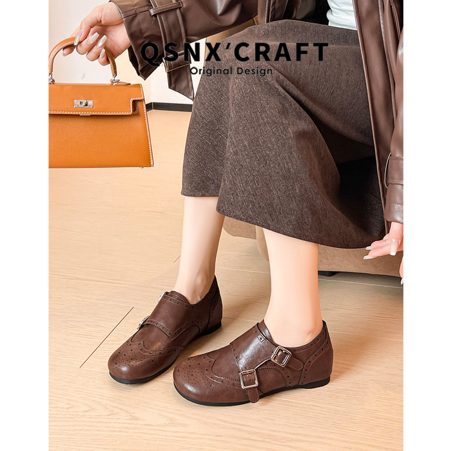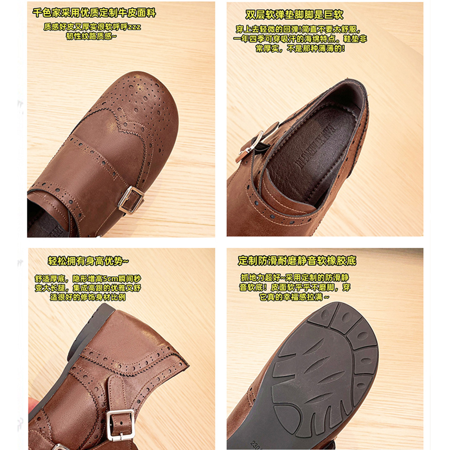 牛皮版~复古皮带扣乐福鞋女2025新款黑色内增高加绒小皮鞋单鞋子