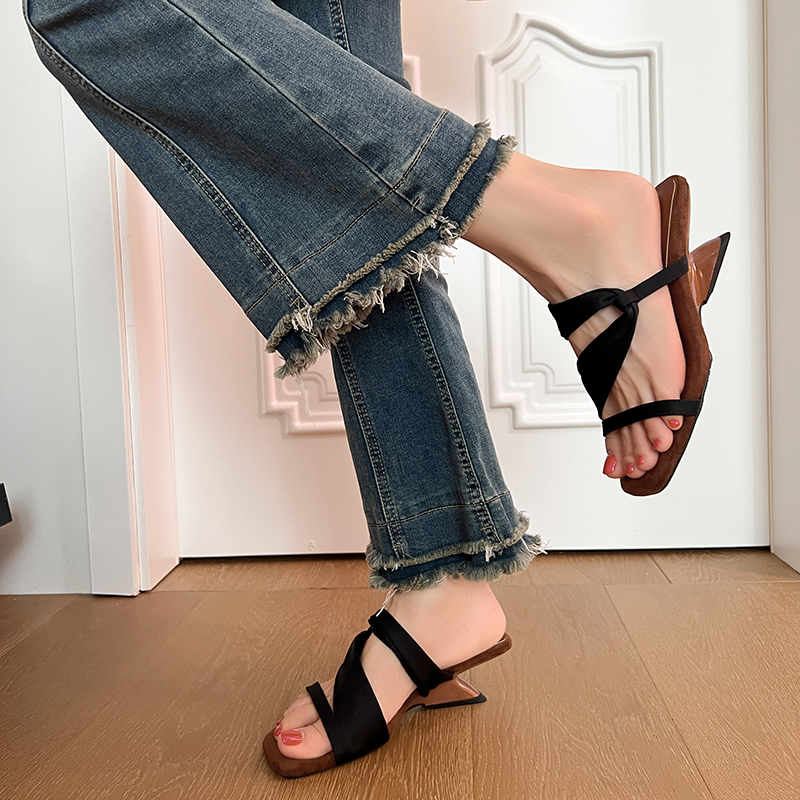 凉拖鞋女夏外穿不累脚坡跟小众时尚气质高级感粗高跟一字带配裙子
