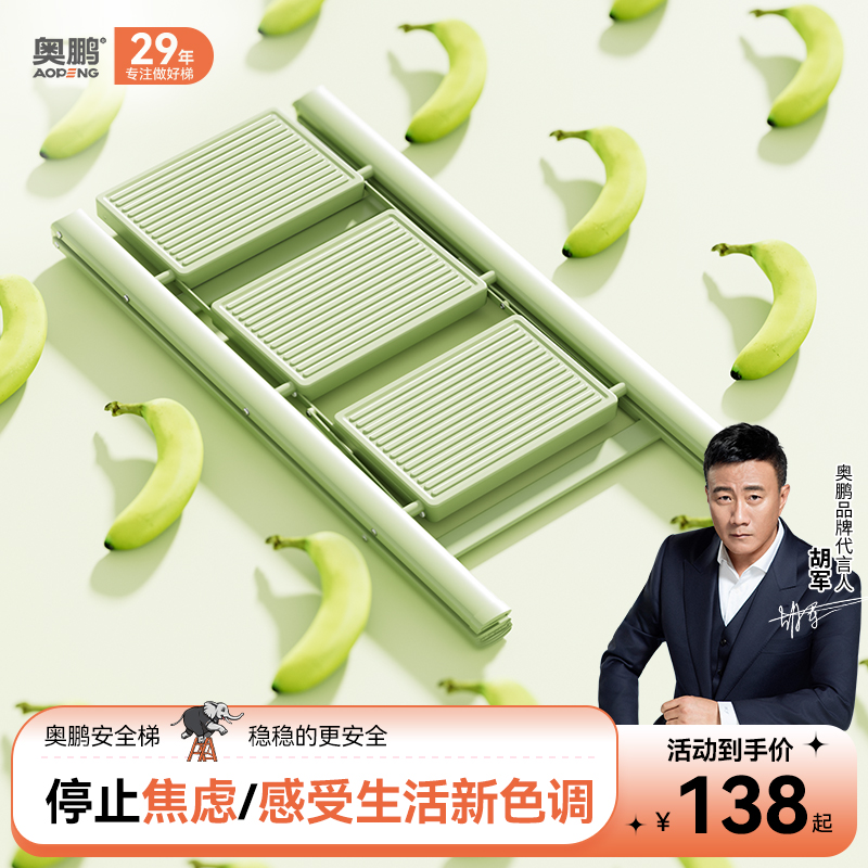 奥鹏不蕉绿梯子夏日新款禁止蕉绿多功能花架梯折叠家用伸缩人字梯