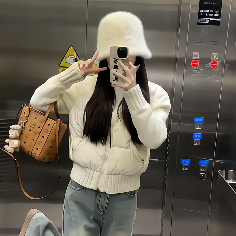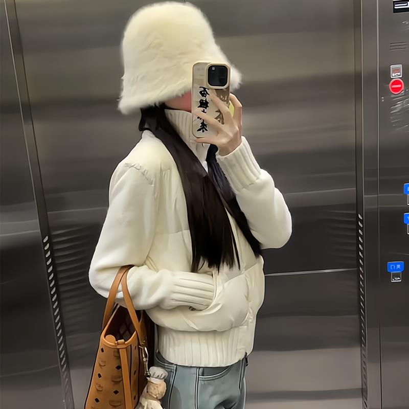 奶油泡芙针织拼接毛衣羽绒棉服女秋冬新款韩国高级感保暖外套