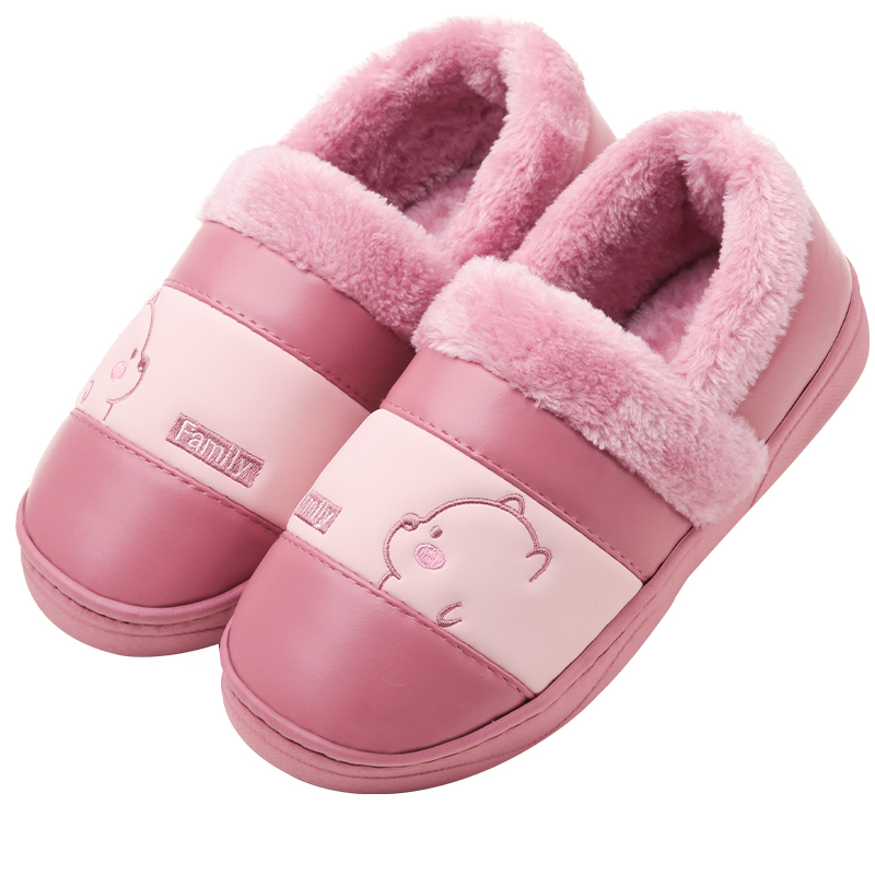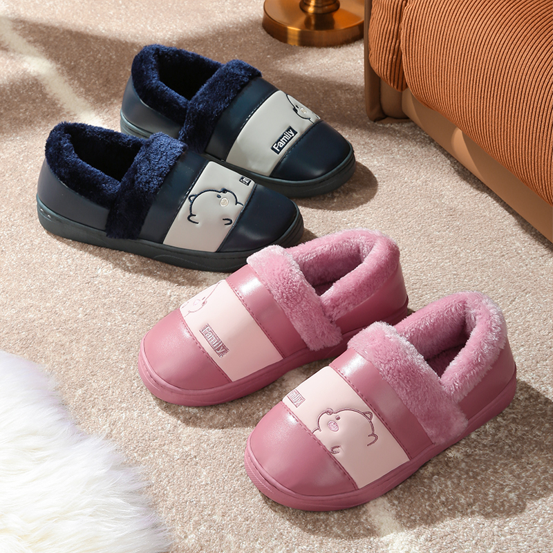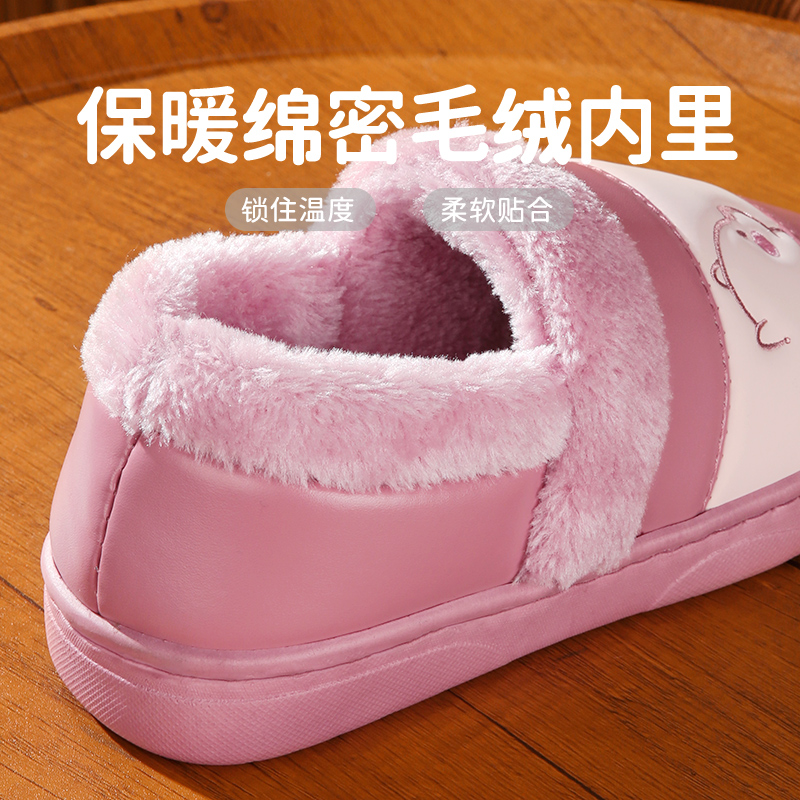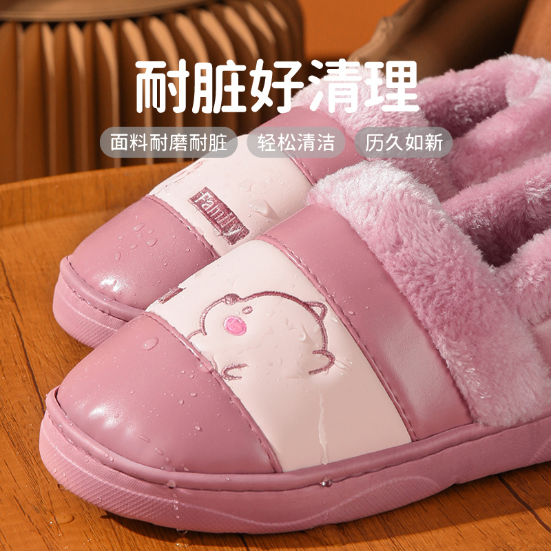 包跟棉拖鞋女士冬季室内家居保暖防滑卡通居家情侣PU皮防水拖鞋男
