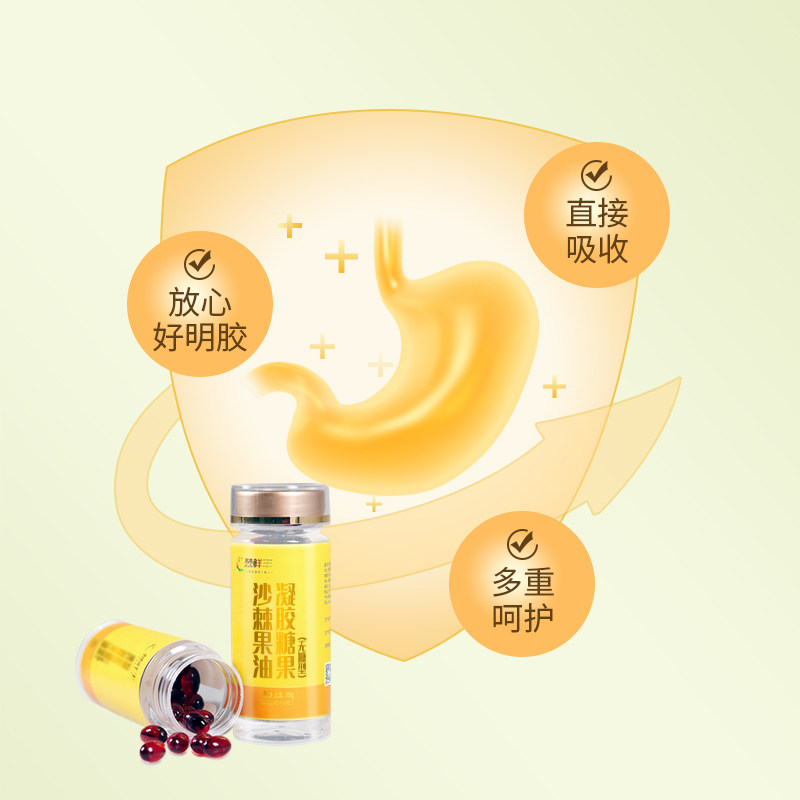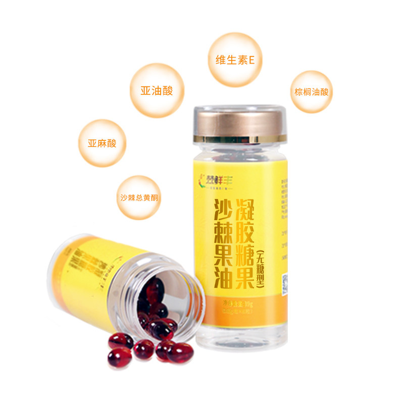 棘鲜丰旗舰店新疆大果沙棘果油凝胶糖果官方正品0.65g*60粒*2瓶