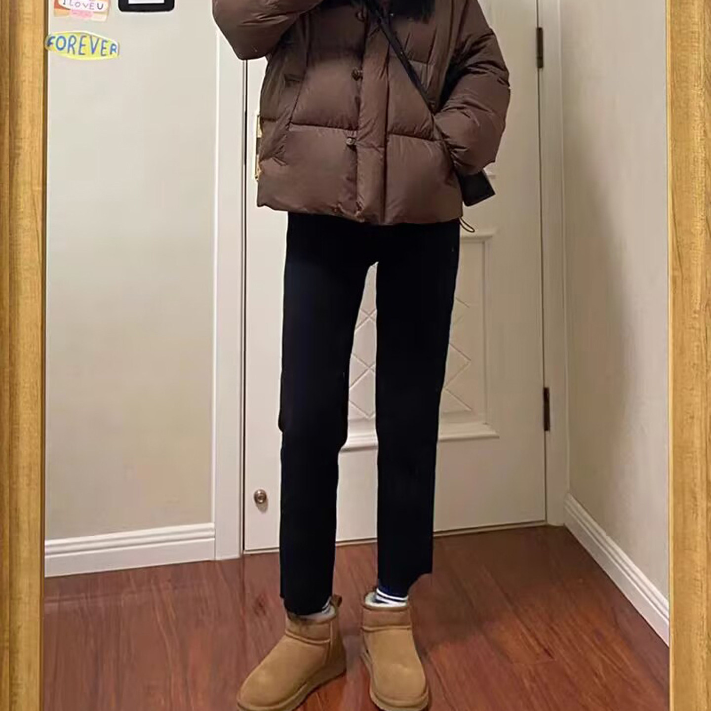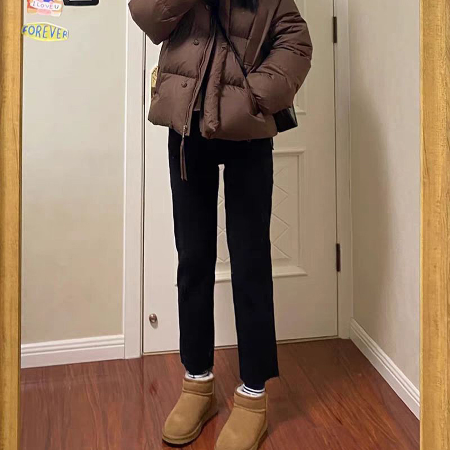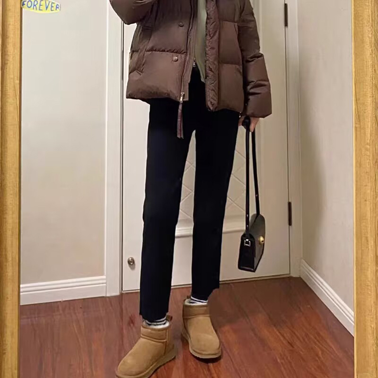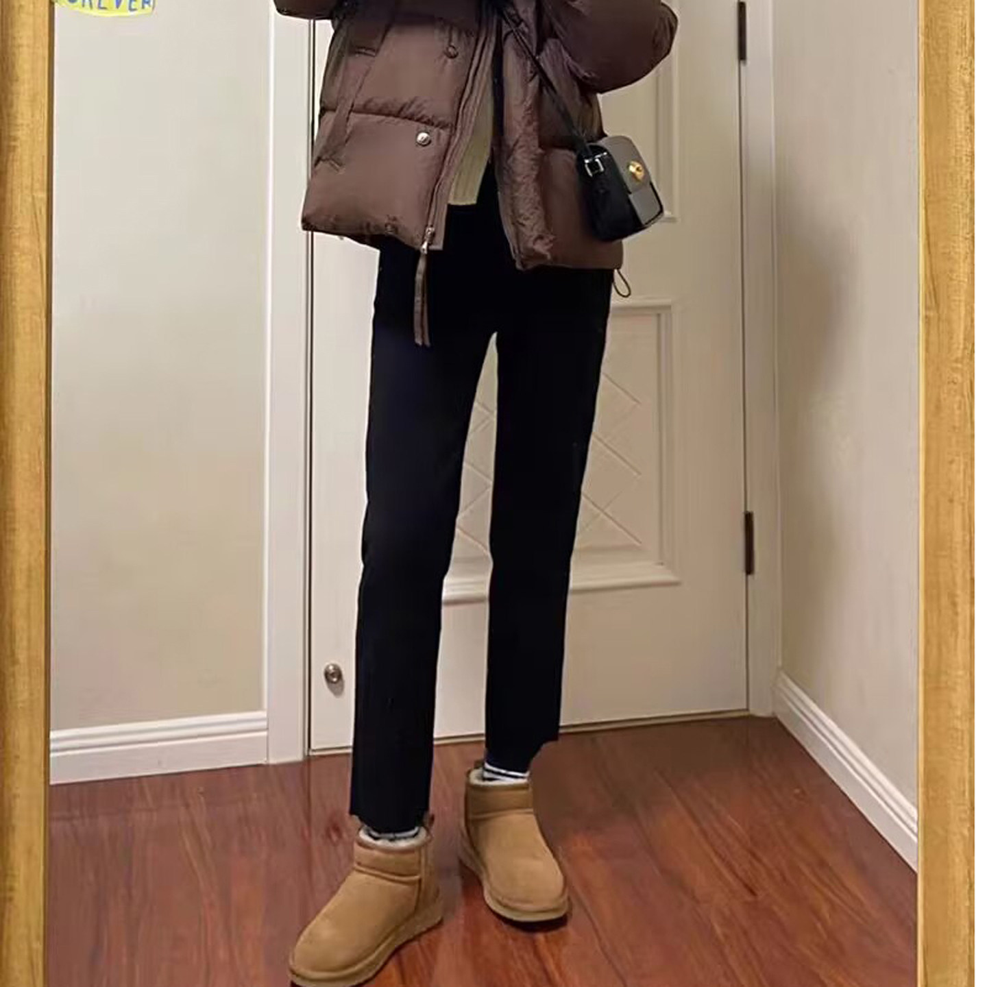 加绒加厚黑色烟管直筒牛仔裤女冬季小个子八九分薄绒法棍裤四面弹