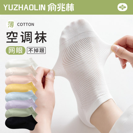 袜子女士短袜夏季薄款网眼透气短筒袜纯棉无骨凉感夏天不掉跟船袜