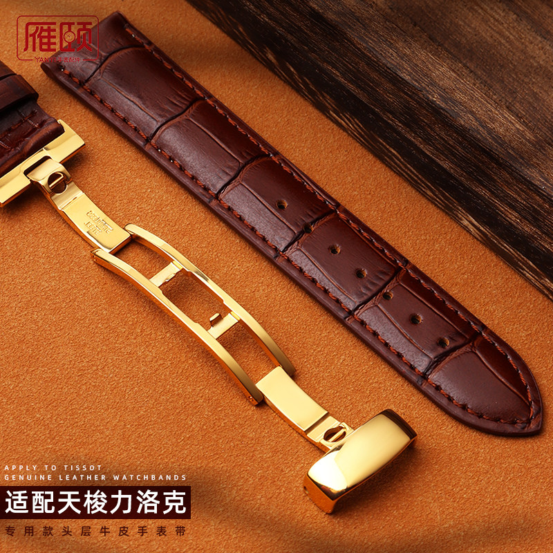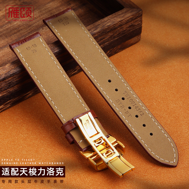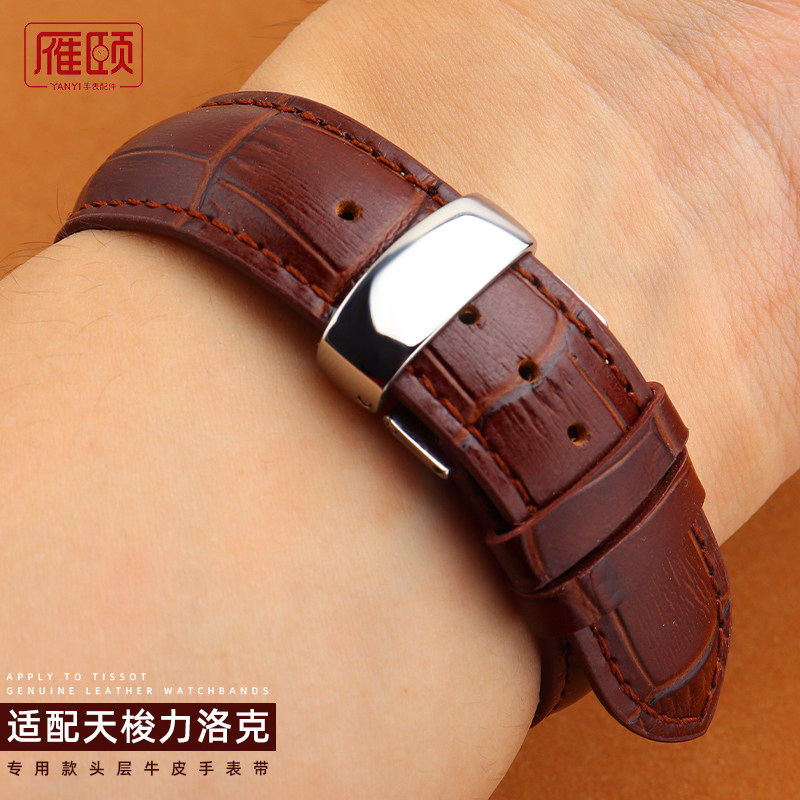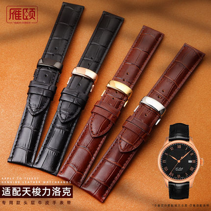 适配天梭力洛克T41T17T065真皮手表带男士19MM鳄纹头层牛皮黑表链