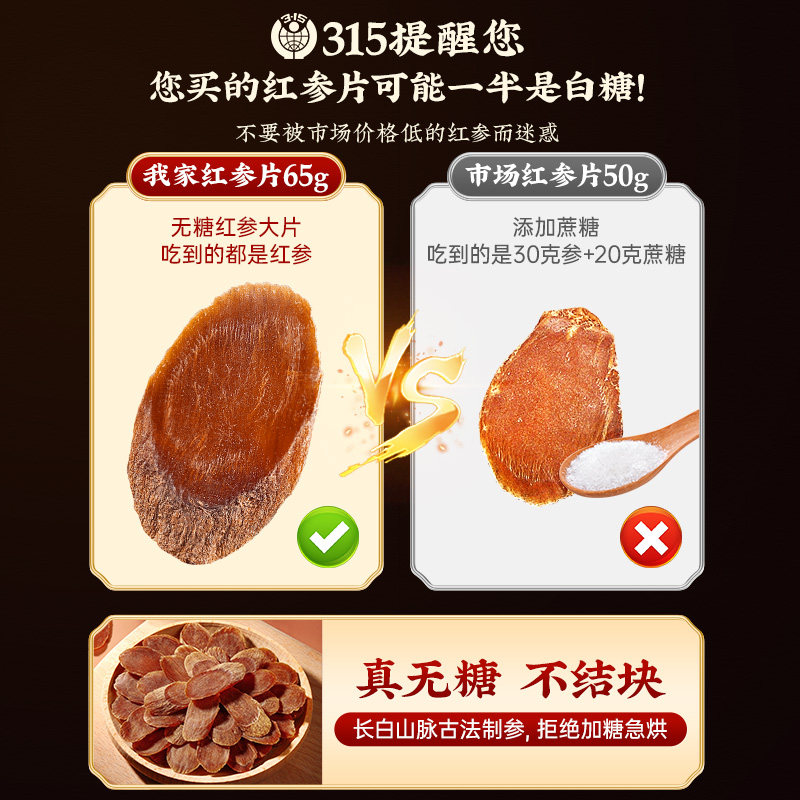 长白山红参500g人参无糖红参片高丽参大片整支吉林正品官方旗舰店