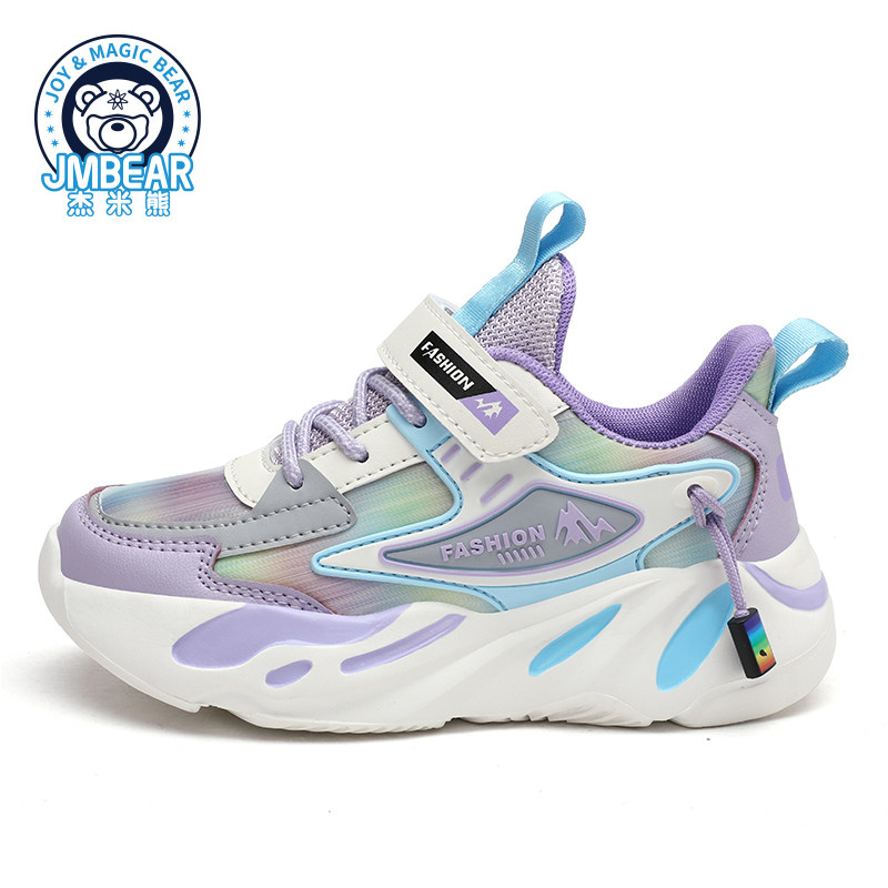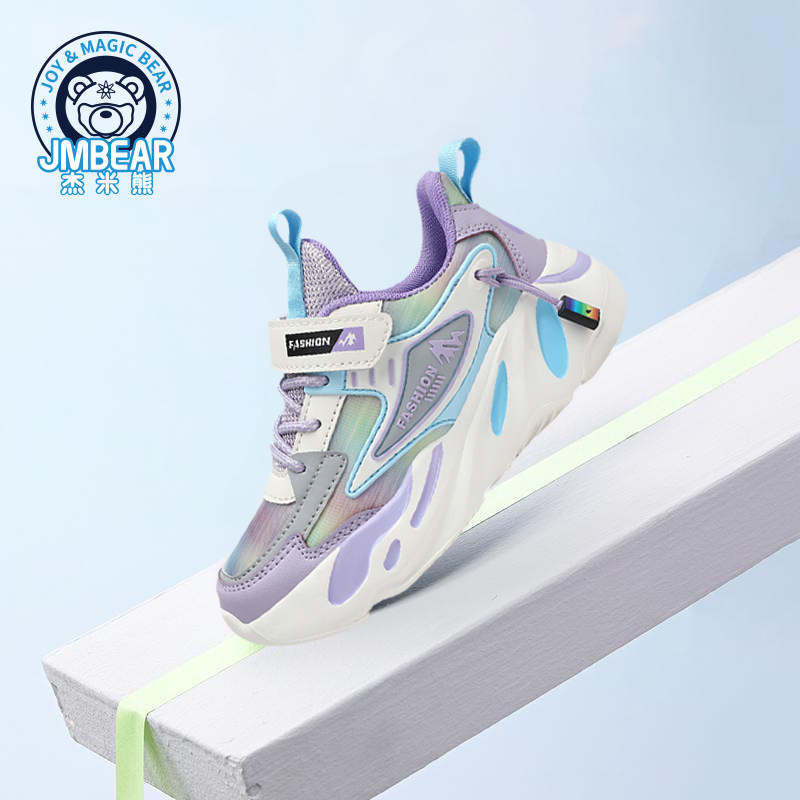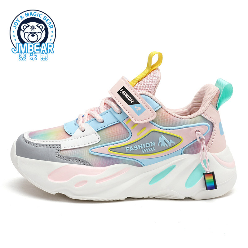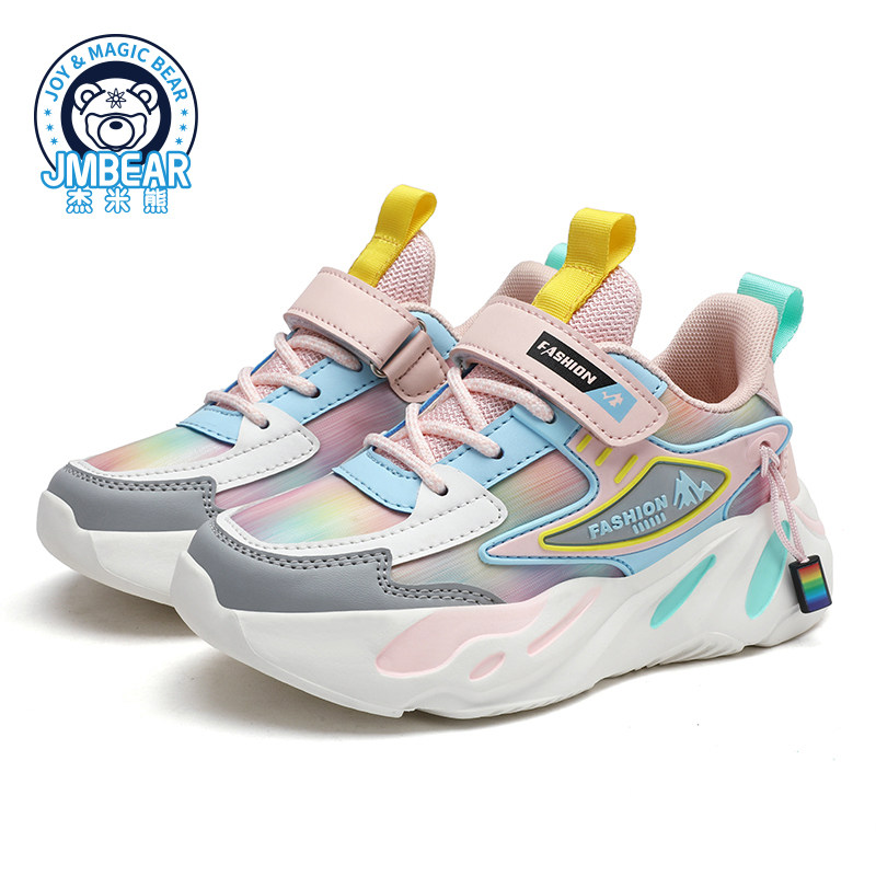 杰米熊童鞋儿童运动鞋2025春秋款女童魔术贴皮面防水中大童跑步鞋