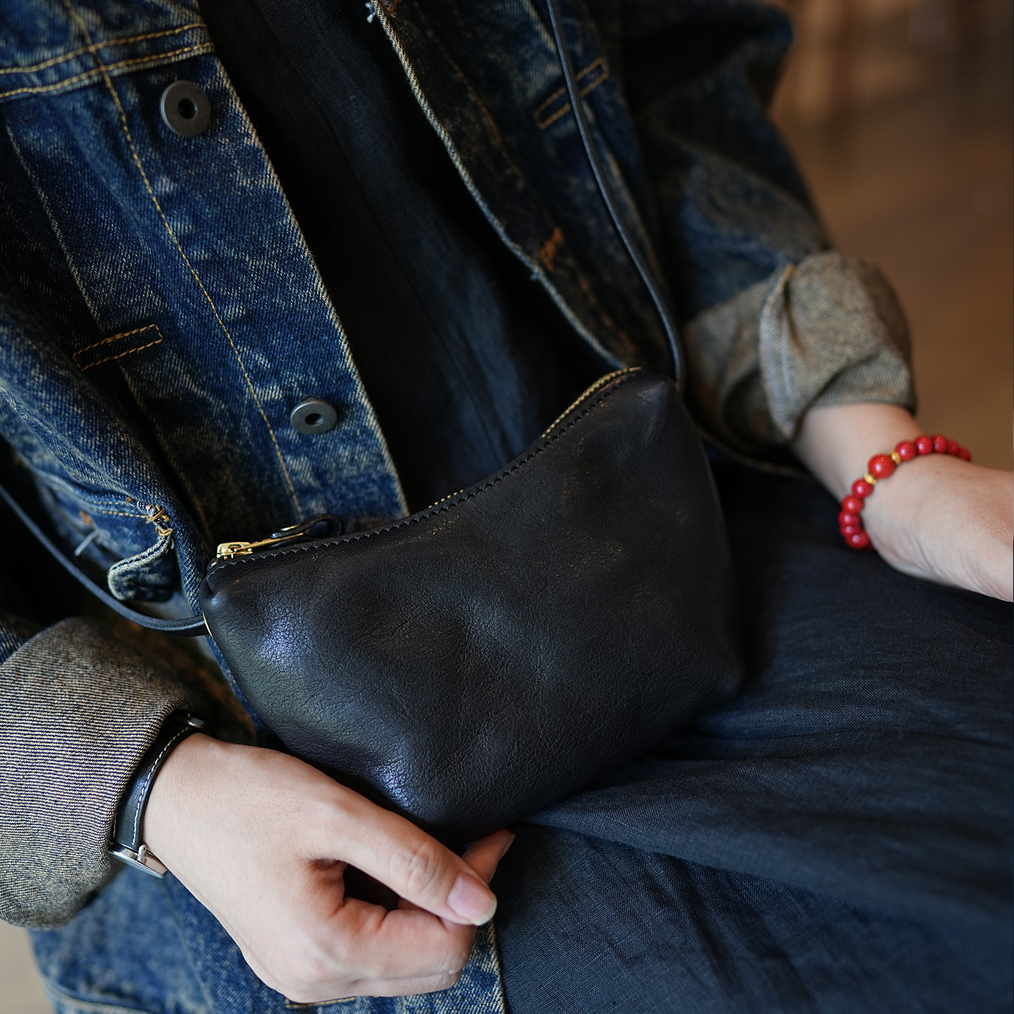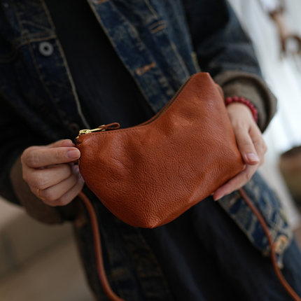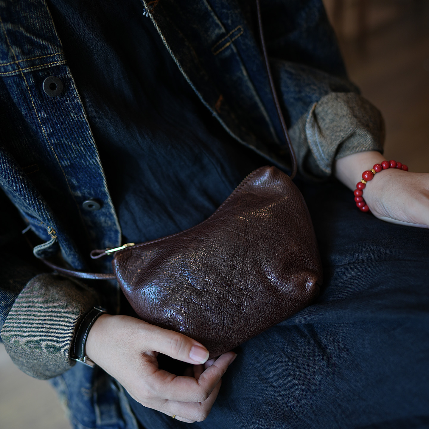 鹿小姐植鞣牛皮洋气复古饺子手机包真皮百搭休闲单肩斜挎小包包