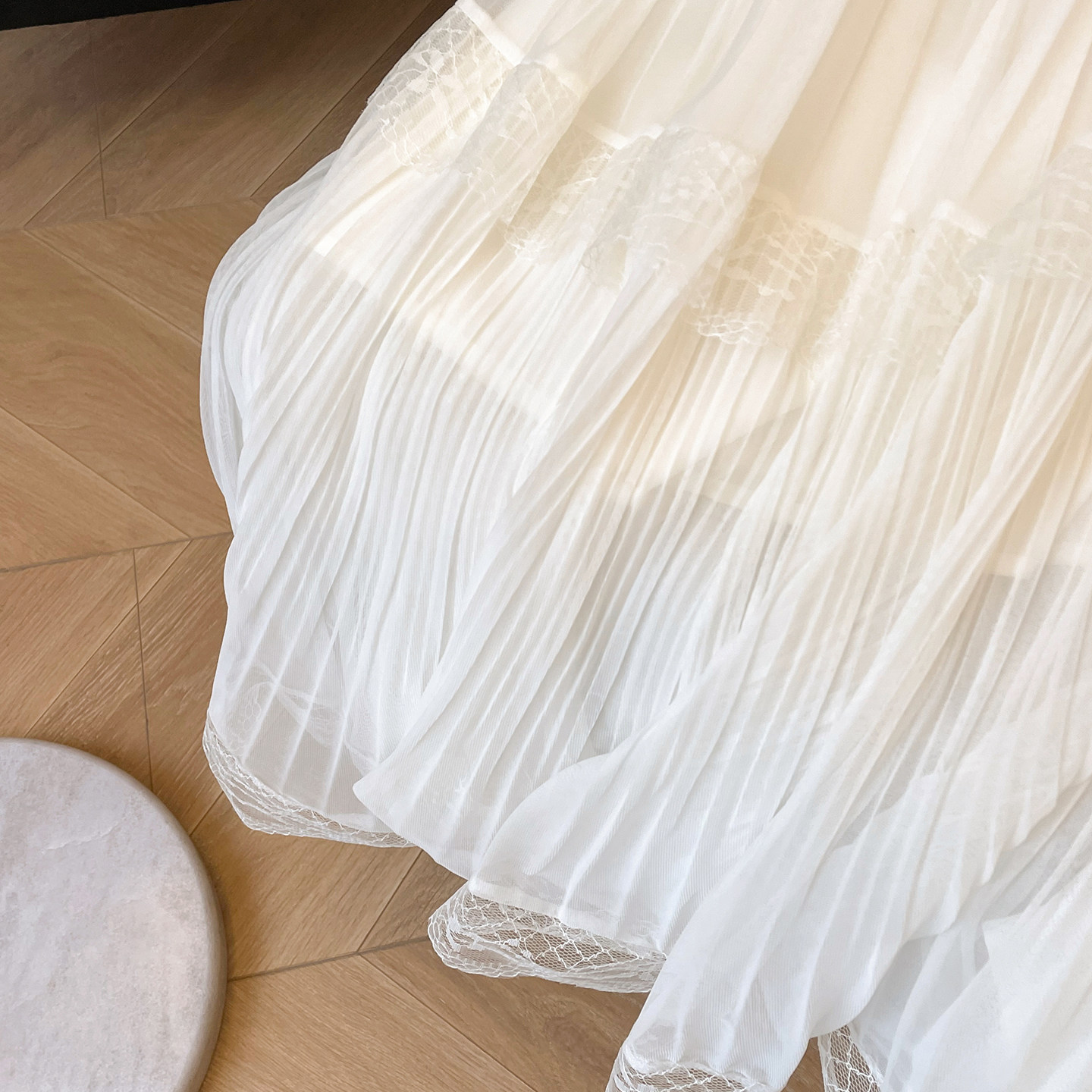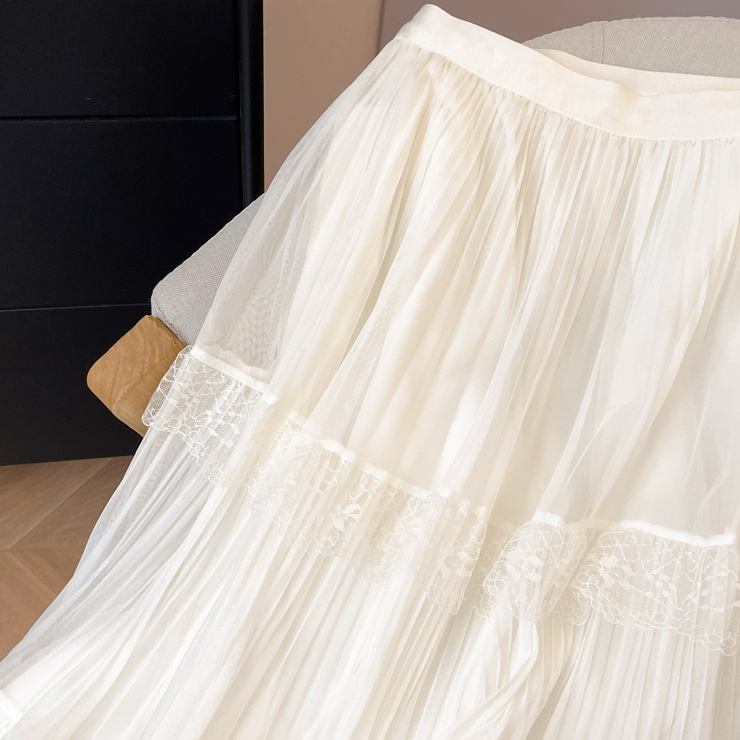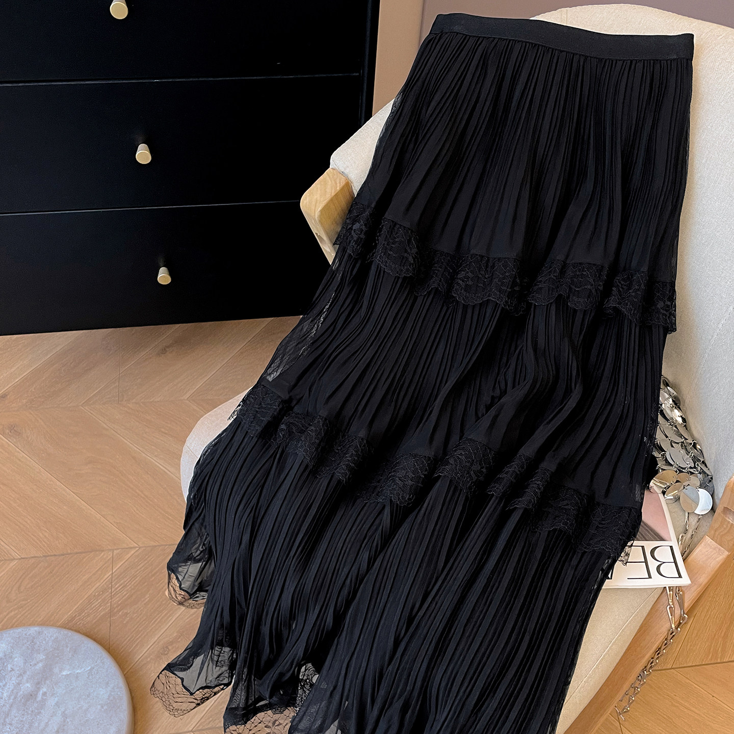 小C家 百褶裙半身裙纱裙女2026新款春拼接蕾丝花边蛋糕裙气质长裙