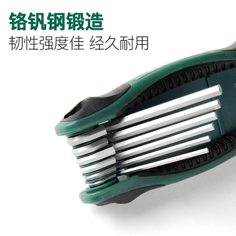 Sata世达折叠内六角扳手英制六角匙公制中孔梅花形内六方扳手套装