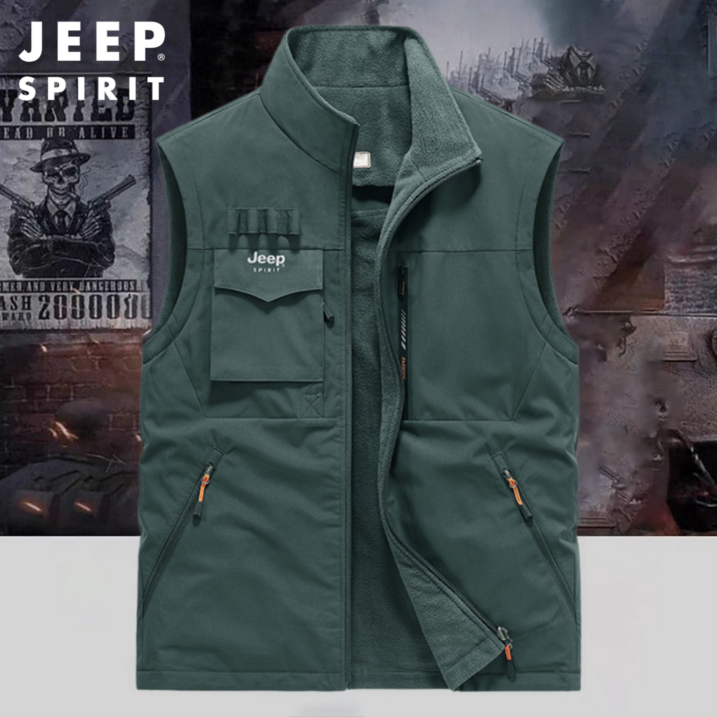 吉普双面穿马甲男士冬季户外多口袋工装坎肩马夹外穿保暖卸寒背心