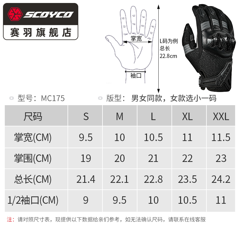 赛羽SCOYCO摩托车骑行骑士手套全指触屏赛车防摔机车夏季男MC175