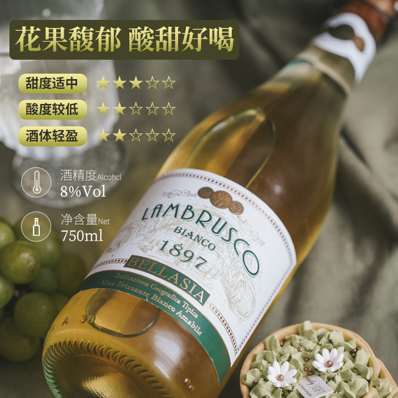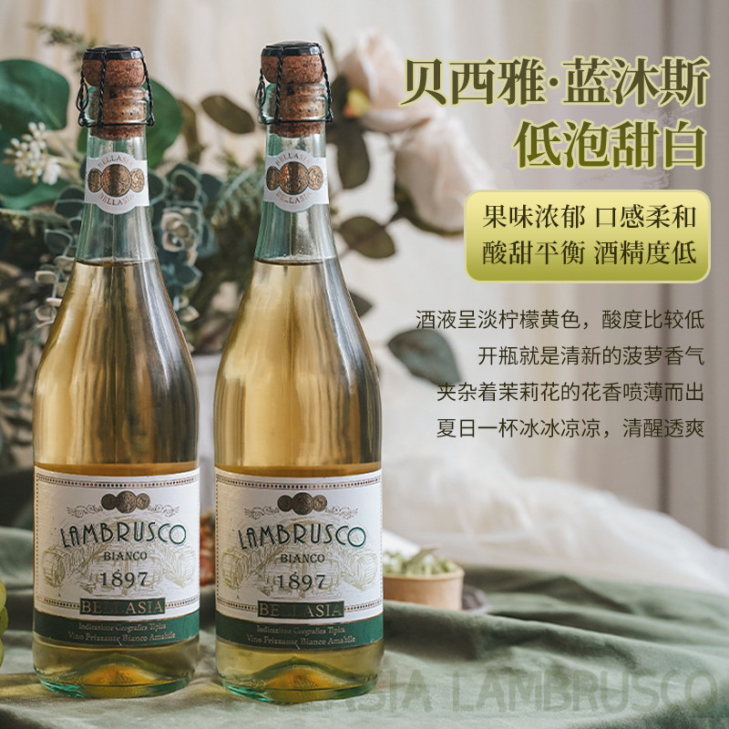 【自营】意大利原瓶进口甜白葡萄酒茉莉菠萝气泡冰起泡酒赠香槟杯