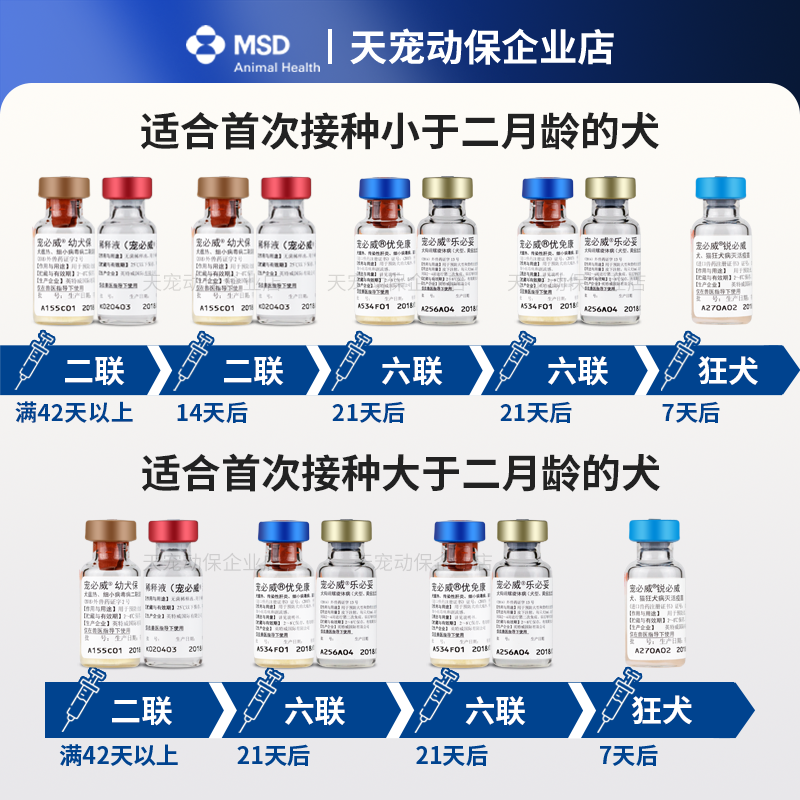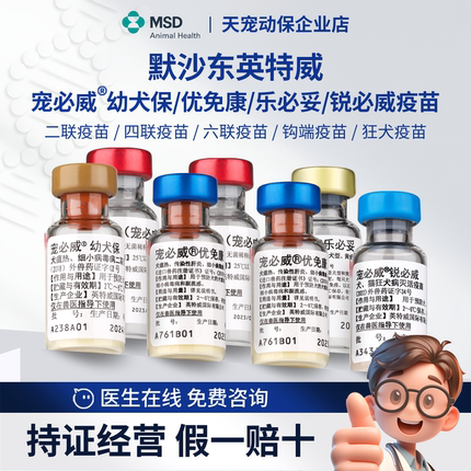 英特威宠必威优免康幼犬保二联四联狂犬疫苗4联幼成犬狗狗默沙东