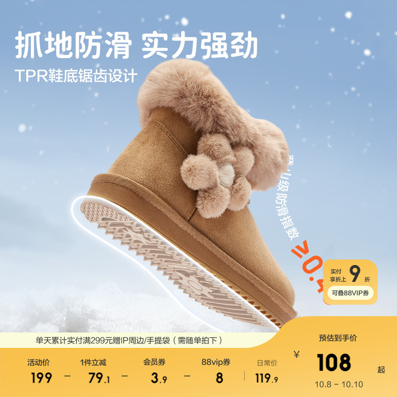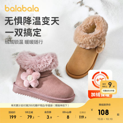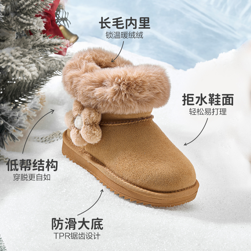 巴拉巴拉儿童雪地靴加绒保暖女童棉靴冬季新款短靴子防滑甜美