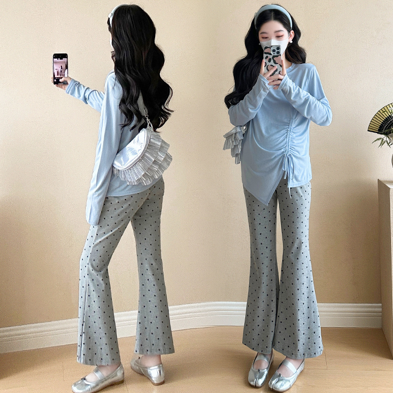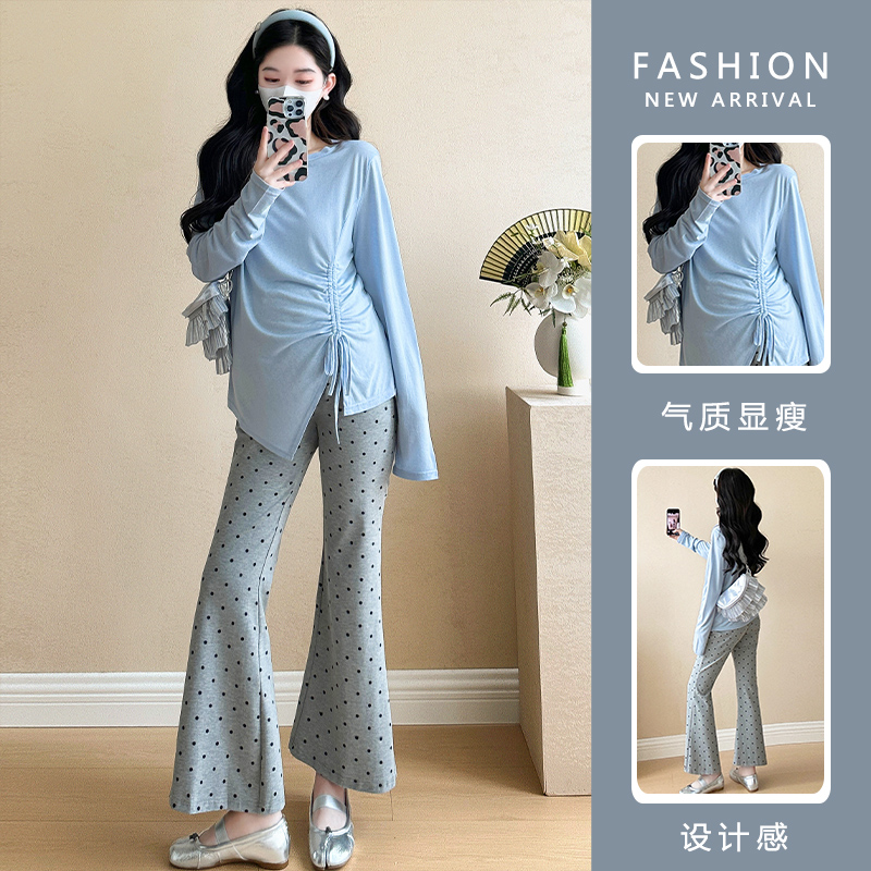 婧麒孕妇装春秋款上衣喇叭裤套装