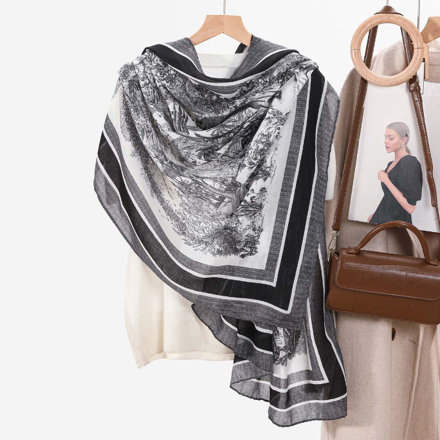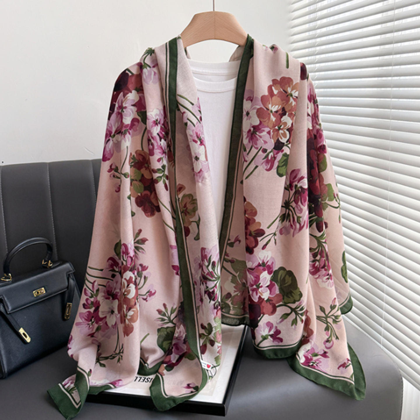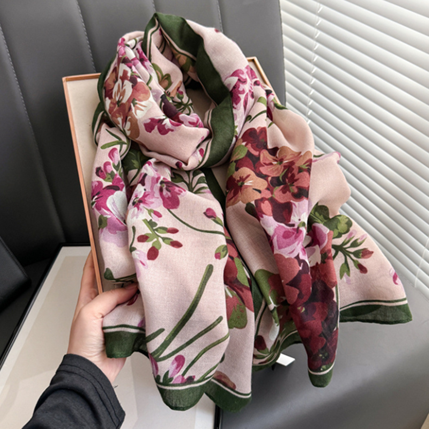 围巾秋冬季女高级氛围感2025新款棉麻手感韩系花朵保暖围脖女丝巾