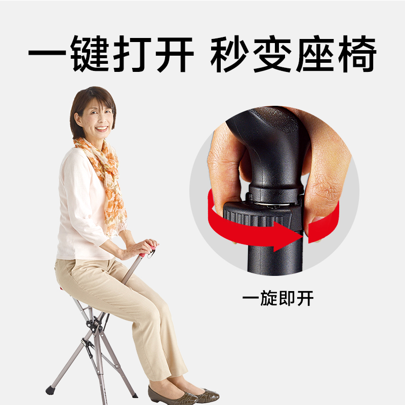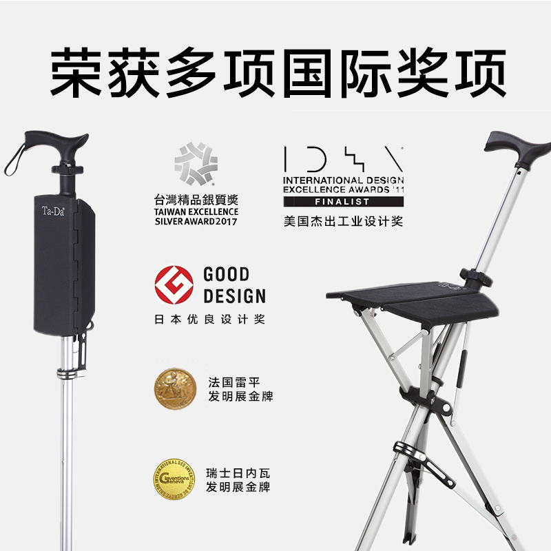 台湾原装进口拐杖椅子TaDa台达轻便折叠防滑老人手杖凳子拐棍板凳