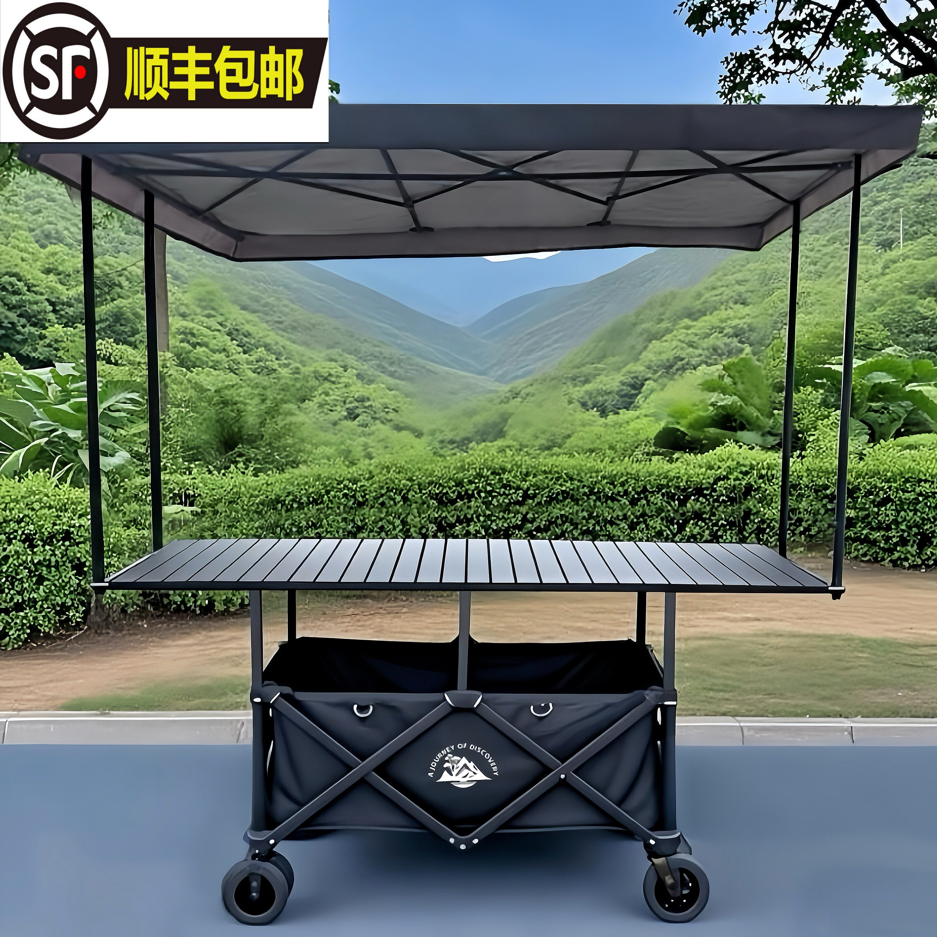 超大摆摊车升降可折叠户外露营车地摊小推车夜市小吃车手拉车营地
