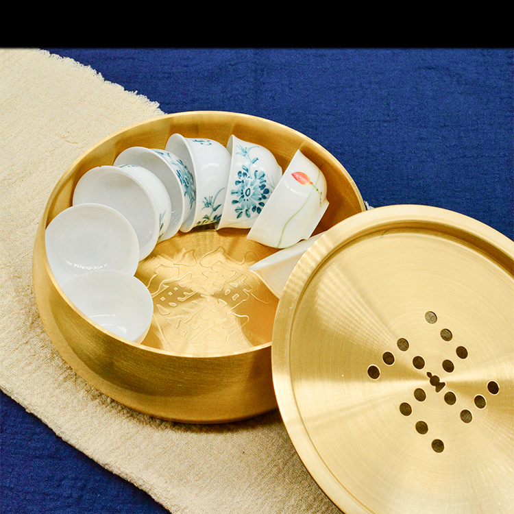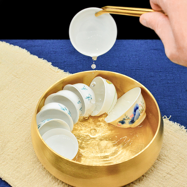 水洗茶洗带盖家用大号特大铜艺水盂功夫茶具套装有盖零配全铜禅意