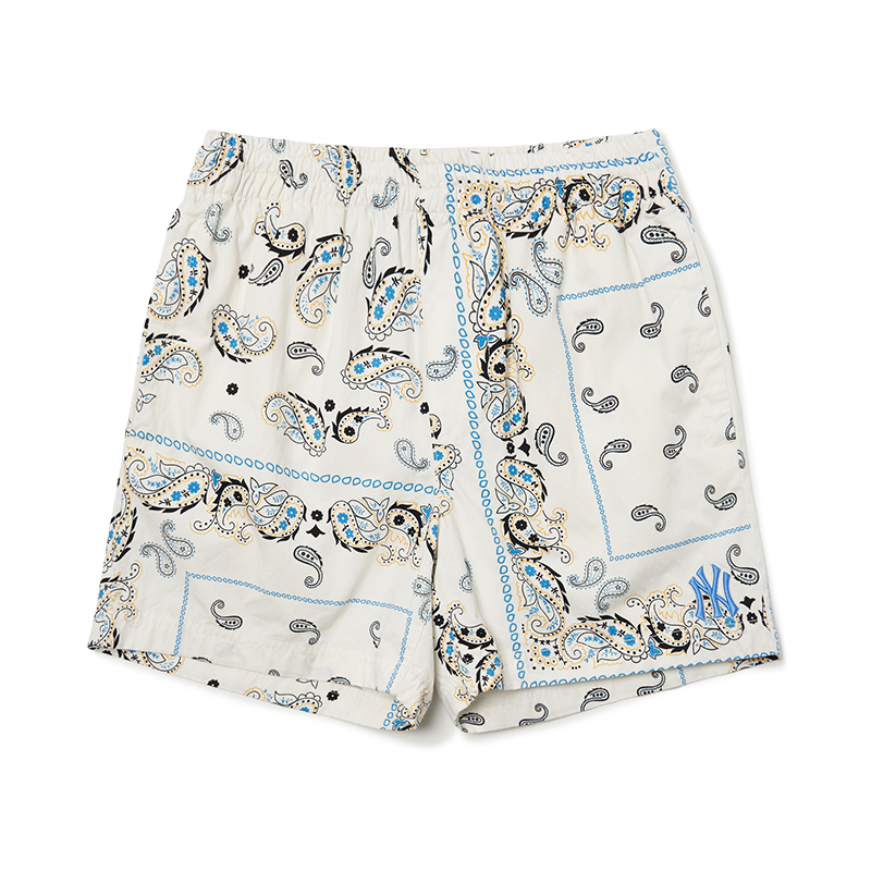 MLB官方 男女腰果花梭织短裤情侣休闲潮百搭夏季SMP02