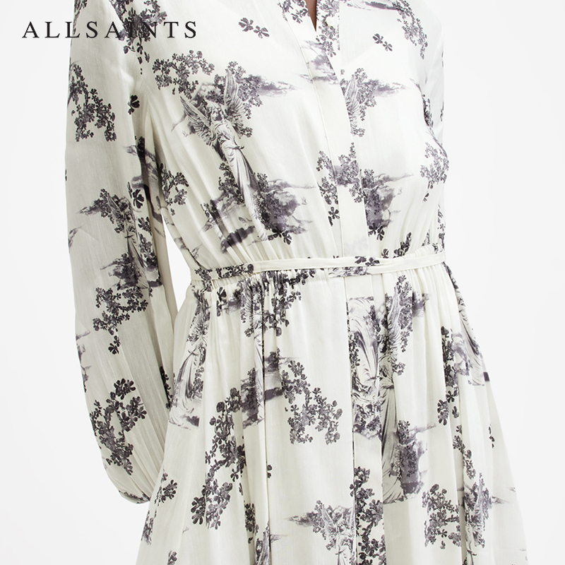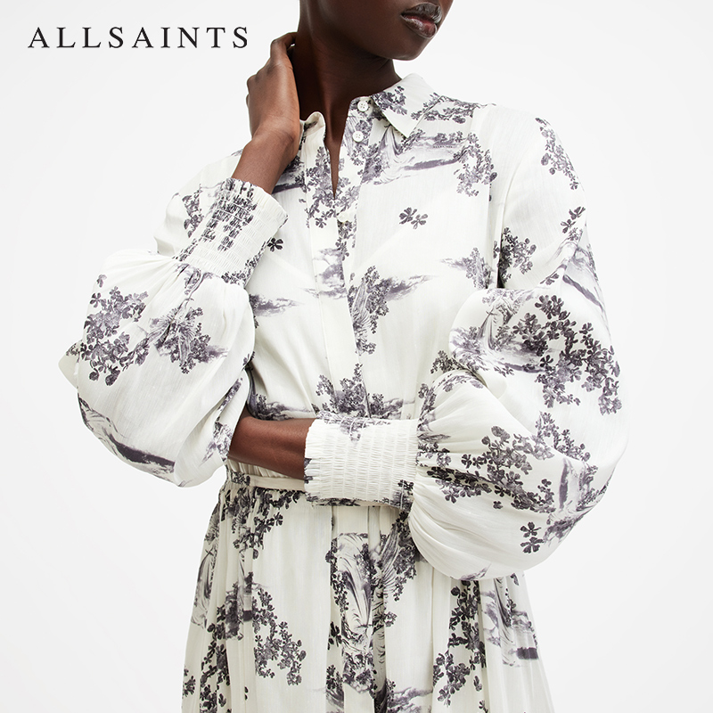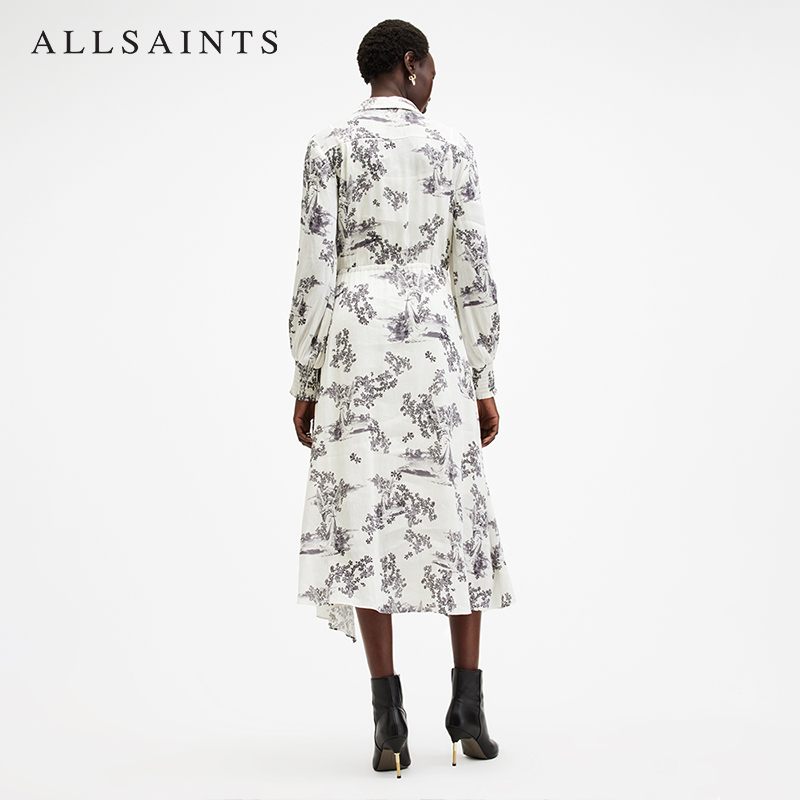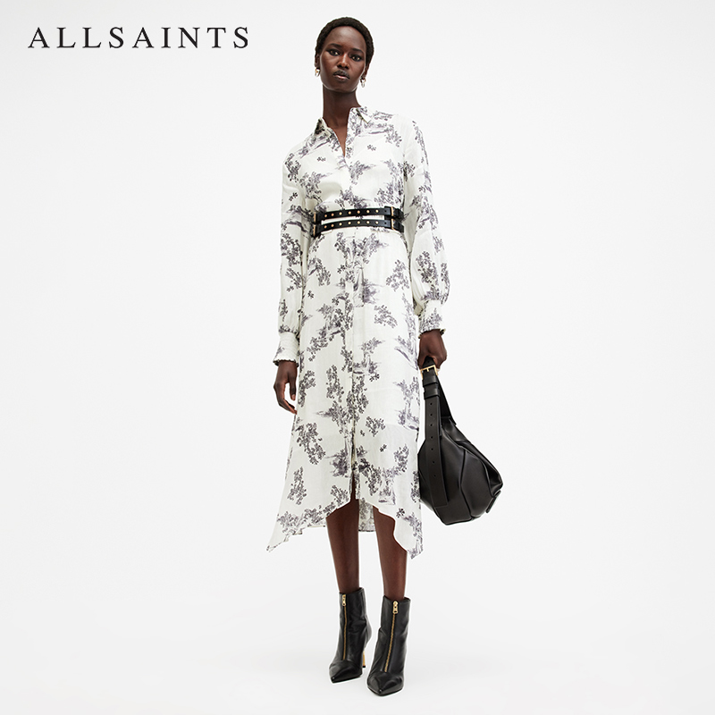ALLSAINTS女士碎花连衣裙亚麻蚕丝混纺衬衫裙秋季女装W040DB