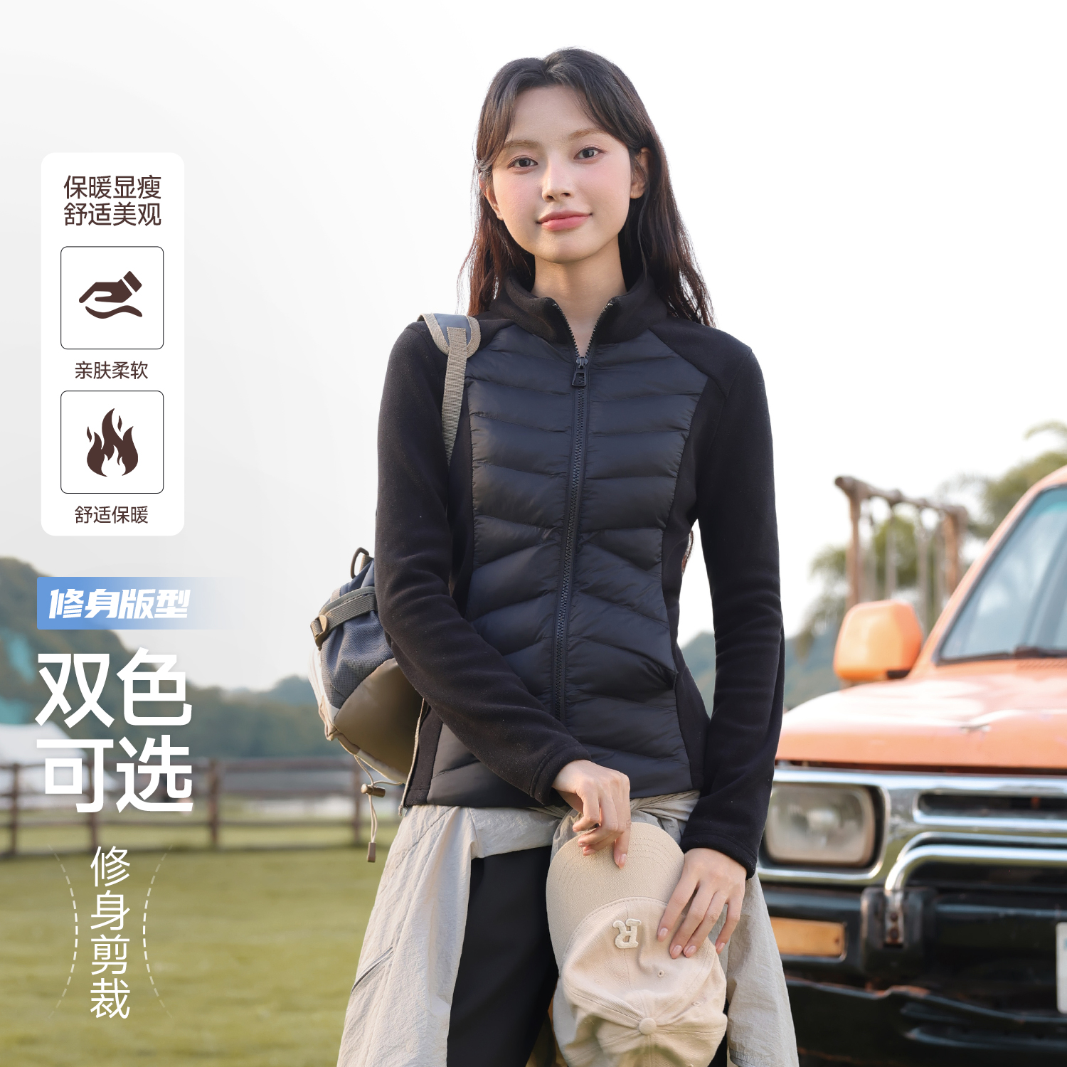 班尼路白色加绒外套女2025秋冬季新款修身摇粒绒冲锋衣内胆上衣H